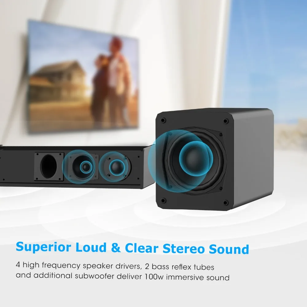 100 Вт ТВ Саундбар 2,1 Bluetooth динамик 5,0 Система домашнего кинотеатра 3D объемный 80 дБ звуковая панель Пульт дистанционного управления с сабвуфером для телевизора