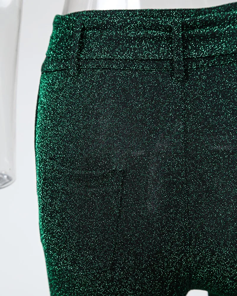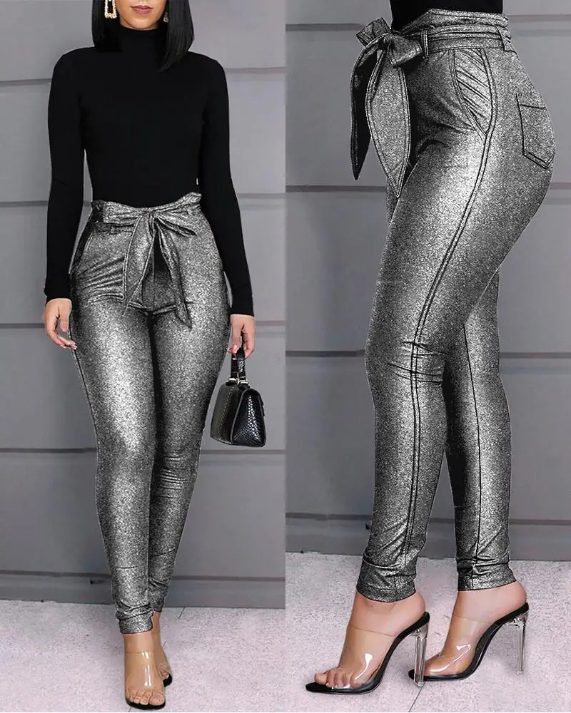 Женские Блестящие Брюки с высокой талией и поясом, обтягивающие повседневные брюки-карандаш