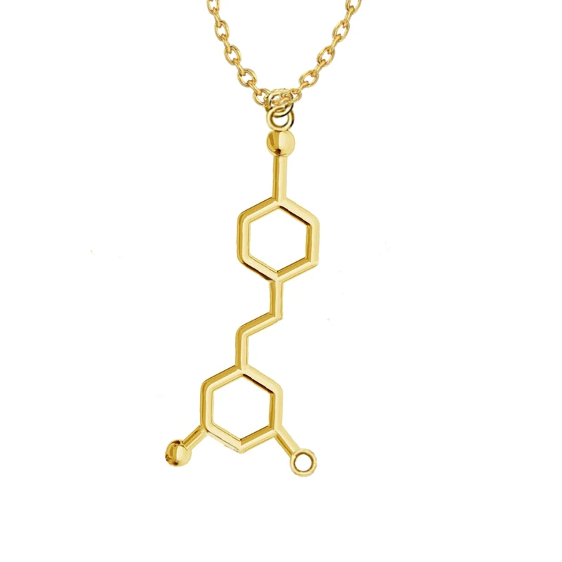 Вы услышали, что красное Вино хорошо для вас. Ресвератрол-это одна из причин. Ресвератрол содержится в коже винограда, поэтому он присутствует в красном, но не белом вине. Его концентрации особенно высоки в винограде Пино Нуар. У мышей ресвератрол обладает анти-раком и противовоспалительными свойствами. Снижает уровень сахара в крови и кровяное давление. И может даже продлить срок службы. Что ни один из них не был доказан людьми, но нет причин не наслаждаться бокалом милого, смелого zinfandel. Вино теперь поставляется в носимой форме-благодаря нашей молекулярной структуры вина ожерелье, теперь вы можете сделать больше, чем просто пить вино. Носить свою любовь для винных бутылок с каждым днем или просто на особые случаи, как при Рисунок "вино" Вечерние или дегустация события. Выберите из розового золота, золота или серебра. Для химиков, любителей вина и девичника-шопинг для ценителя вина в вашей жизни не всегда прост. Подарите им наше вино, вдохновленное ювелирными изделиями, не опасаясь, что они будут ненавидеть вкус или придется ждать годы, чтобы попробовать его. Это массивное ожерелье будет также обожжено любителями химии и учеными. Это смелый способ выразить свою любовь к прекрасному вину и органической химии. Помолвлены? Эти ювелирные изделия из спирта делают отличные вечерние подарки для девичника! Идеальный подарок для ваших лучших друзей или тех, кто любит вино. Если они не могут получить достаточно, а вино-это их любимый способ расслабиться в конце долгого дня, подарите милый и забавный подарок в виде этого ожерелья!