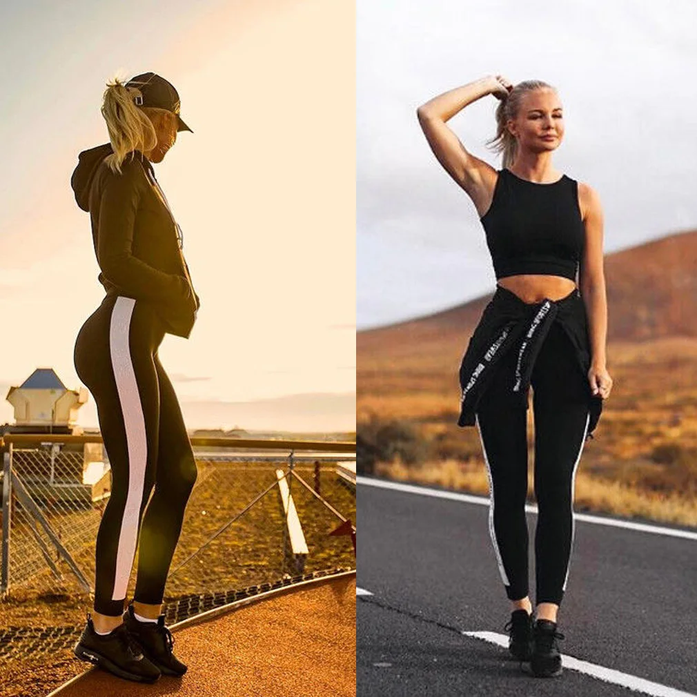 Женские спортивные Леггинсы с высокой талией для фитнеса, спортивные штаны для бега, женский спортивный костюм, длинные леггинсы с боковыми полосками