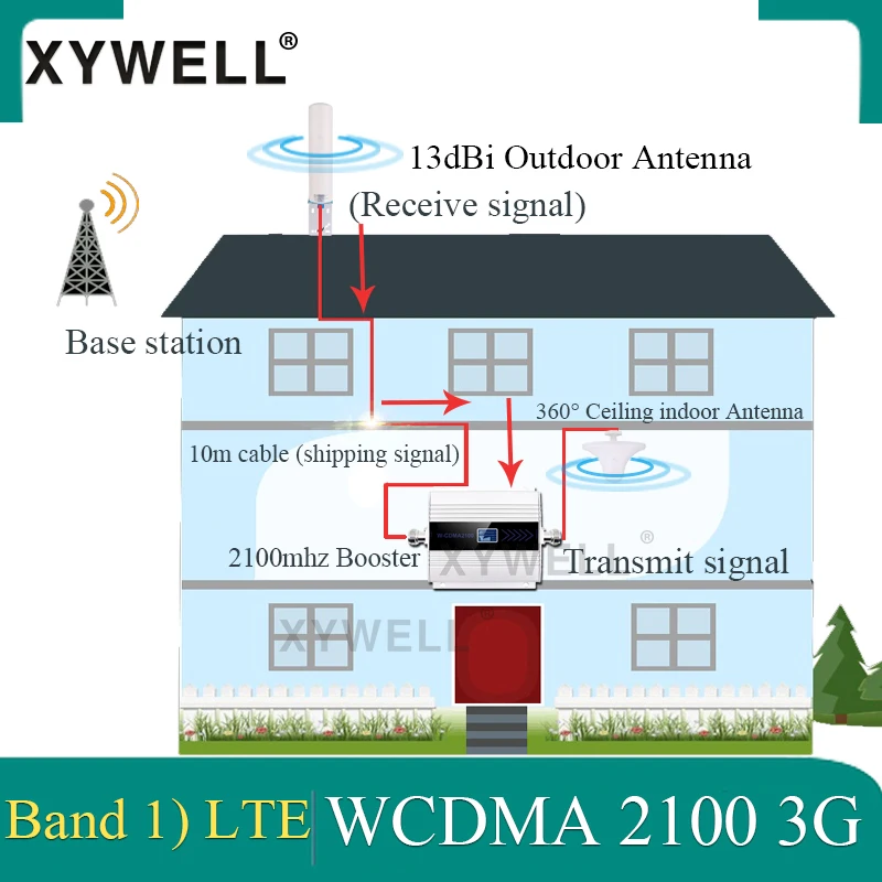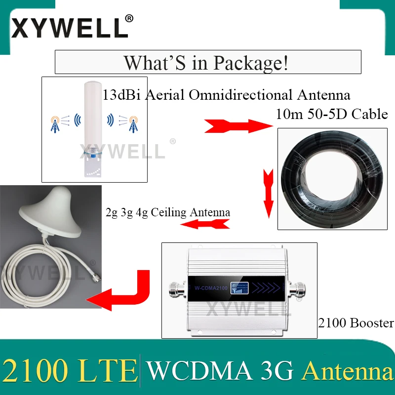 XYWELL набор усиления 68дб (LTE Band 1) 2100 UMTS Мобильный усилитель сигнала 3G (HSPA) WCDMA 2100MHz 3G UMTS сотовый ретранслятор усилитель