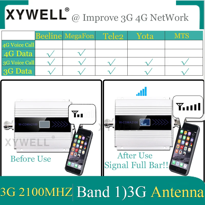 1. Пожалуйста, убедитесь, что вы можете получить как минимум 3 бар 2100 МГц (полоса 1) 3G сигнал на открытом воздухе перед покупкой, в противном случае этот продукт не может вам помочь. Для улучшения сигнала в помещении необходим хороший внешний сигнал.