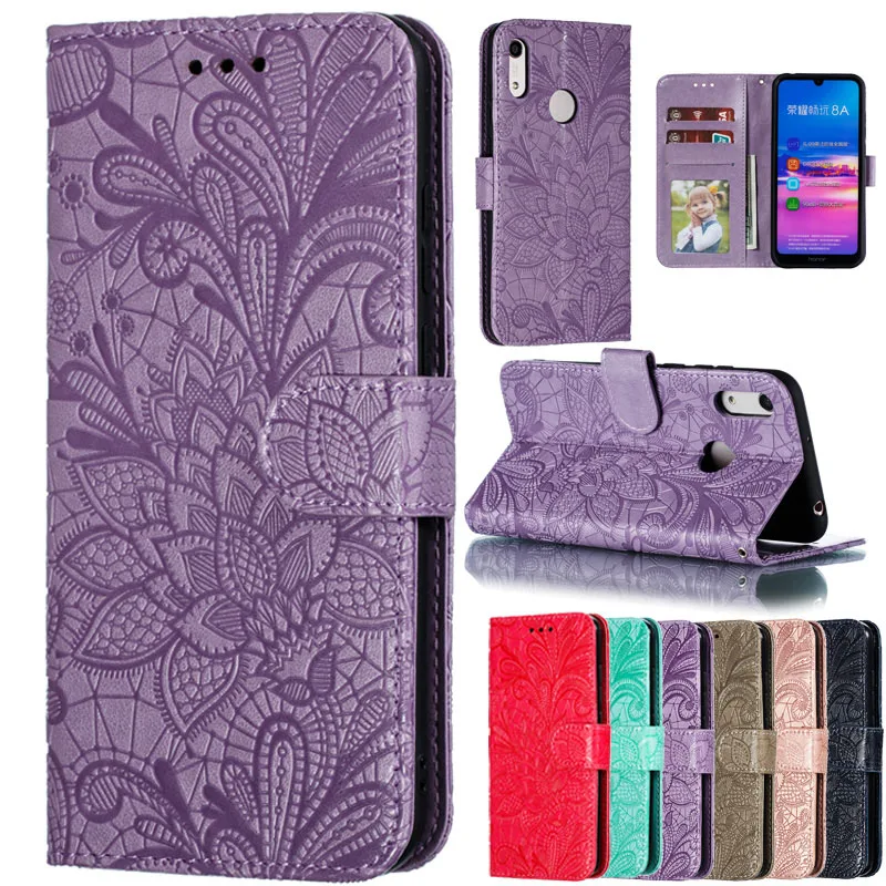Флип-чехол с 3D кружевом для Huawei Honor 7A 7C 10 Lite 8A 8C 8X 8S 20 V20 9X Pro 10i 20i P30 Lite Y5 2018 Y5 Y6 Y7 Y9 2019, чехол