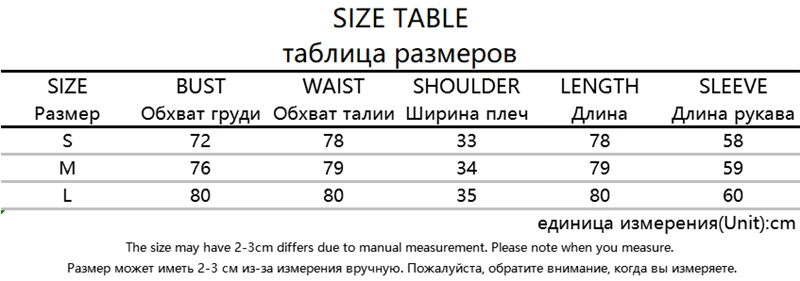 Таблица размеров