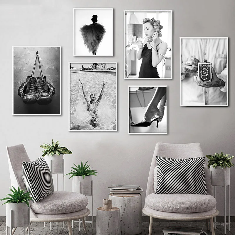 Черно-белый постер, модный принт, сексуальная камера из фильма для ...
