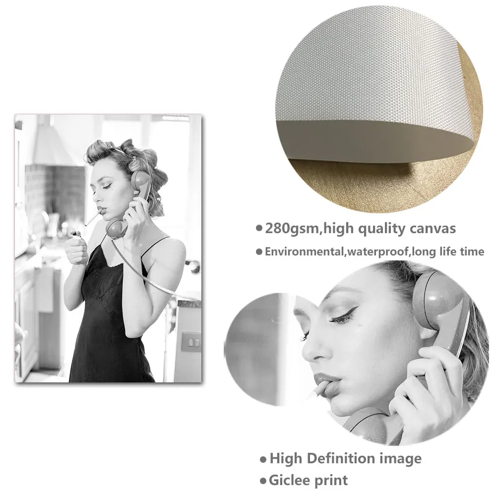 Сексуальный женский модный постер, черно-белый холст с принтом, нас...