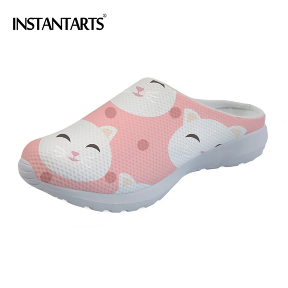 Шлепанцы женские летние INSTANTARTS, дышащие, с рисунком кота, на плоской подошве, пляжные, 2020