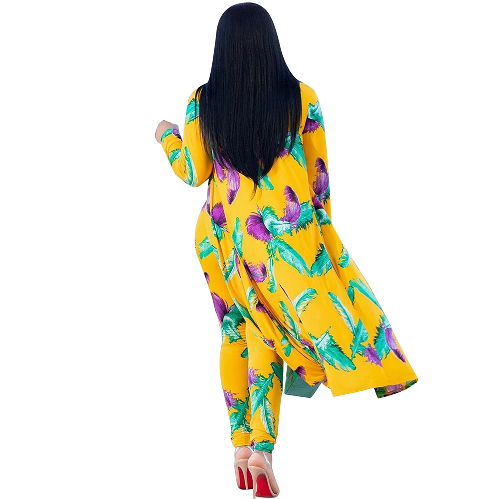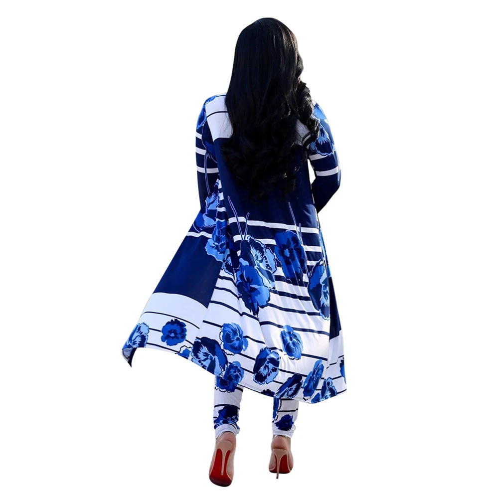 Комплект из двух предметов, Модный женский кардиган с цветочным принтом и длинными рукавами, комплект со штанами