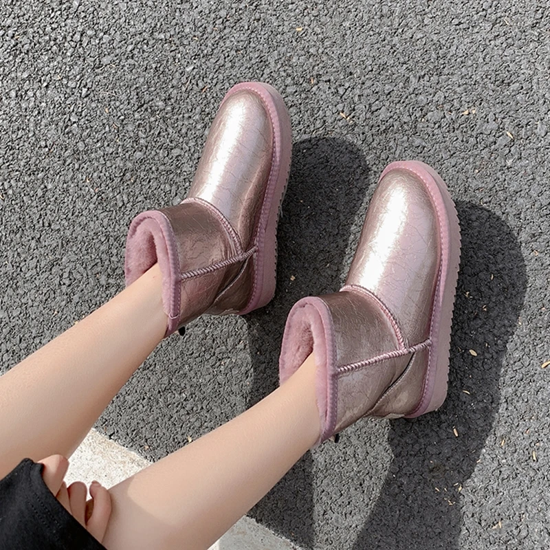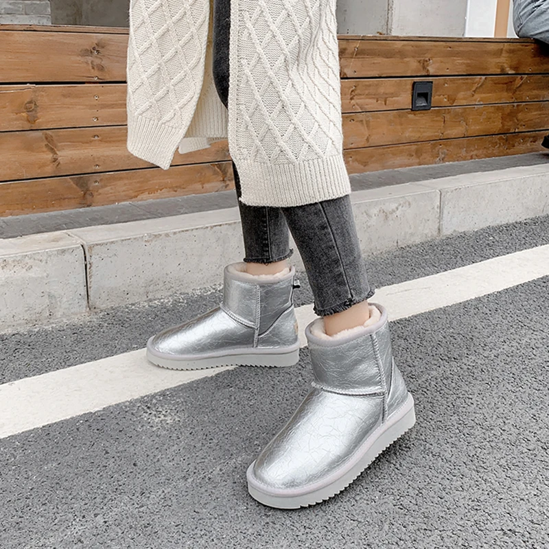 Новинка 2021, модные классические женские сапоги из 100% натуральной воловьей кожи с австралийским натуральным мехом, теплая зимняя обувь для женщин