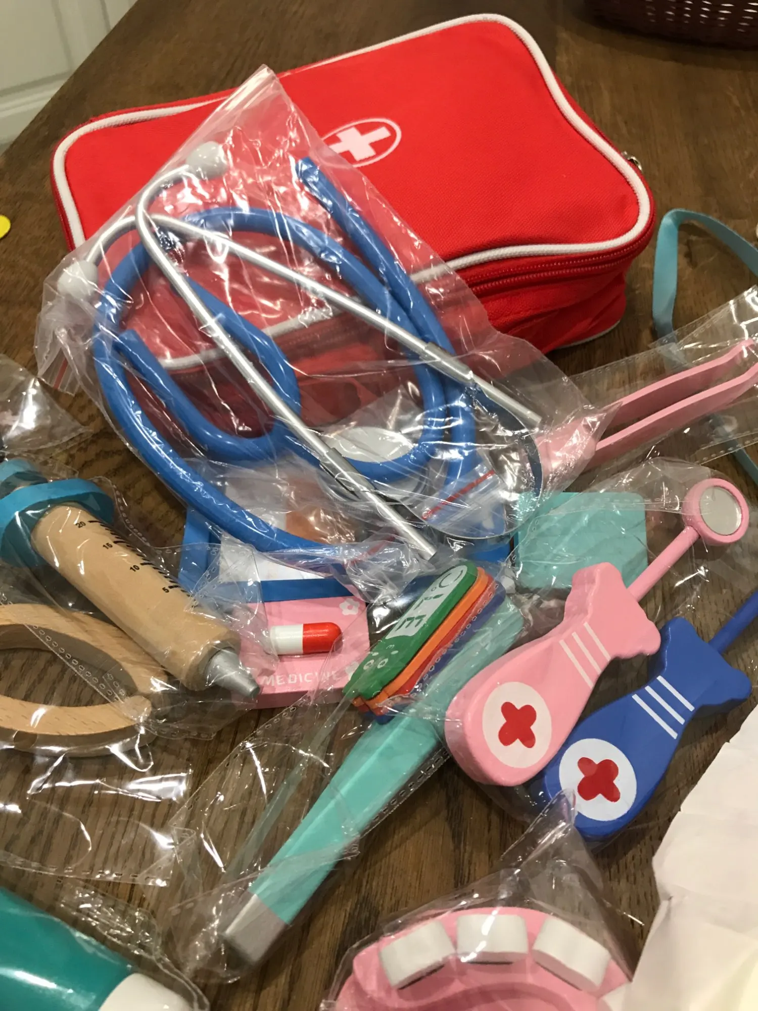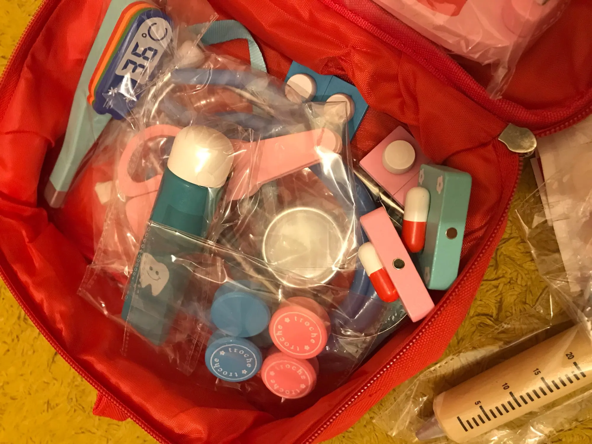Классный набор, ребёнку в 2 года понравился, играет,особенно нравится ставить уколы, слушать сердце и играть с зубами Очень нравятся деревянные игрушки, сумка хорошая, крепкая как и сами игрушки. Дошёл заказ за 2 недели в Краснодар.