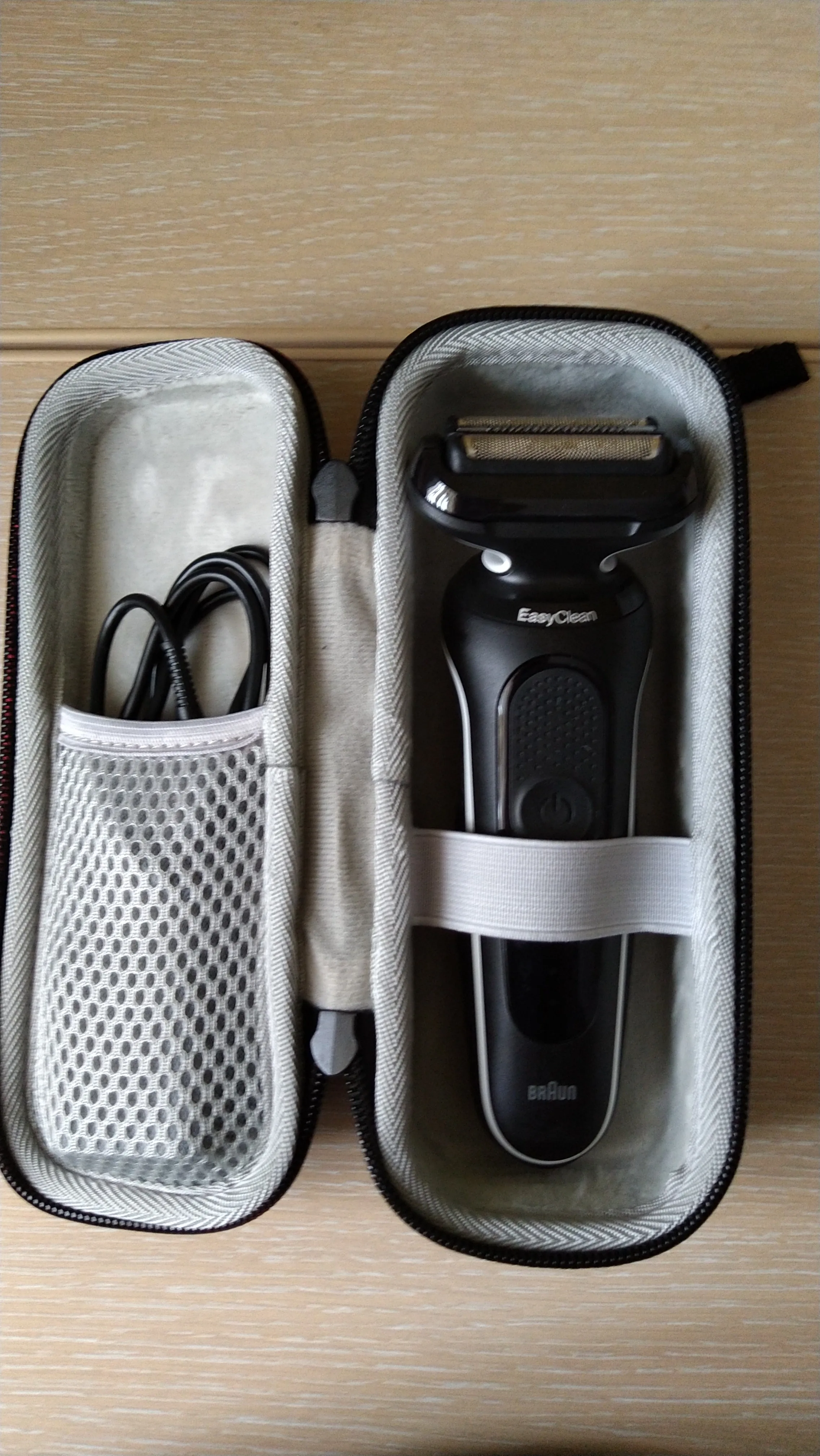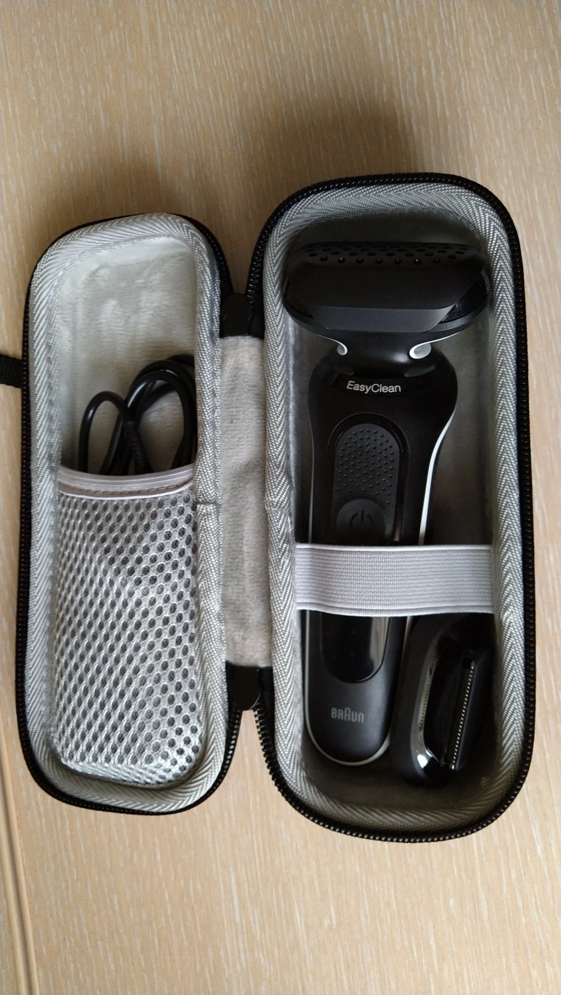 Долго искал подходящий кейс для бритвы Браун и вот оно: бритва, одна триммерная насадка и зарядник. Не жмёт, не болтается. Идеально!