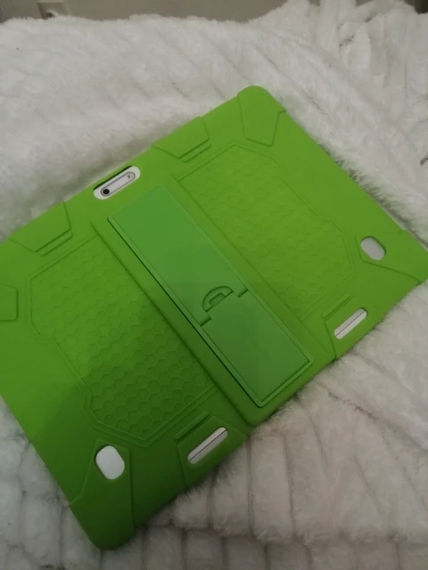 Хороший материал, чехол хорошо приспособлен к планшету, Задняя опора немного сложна в установке для ребенка, но в целом хорошо. Очень быстрая доставка.