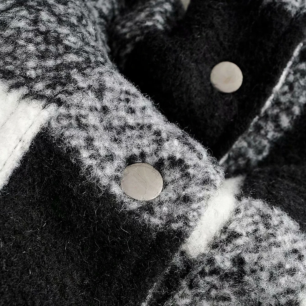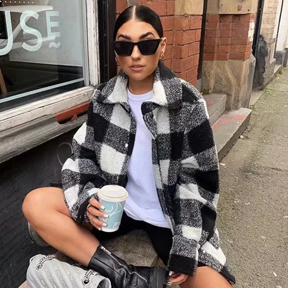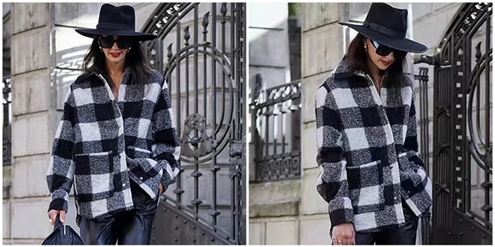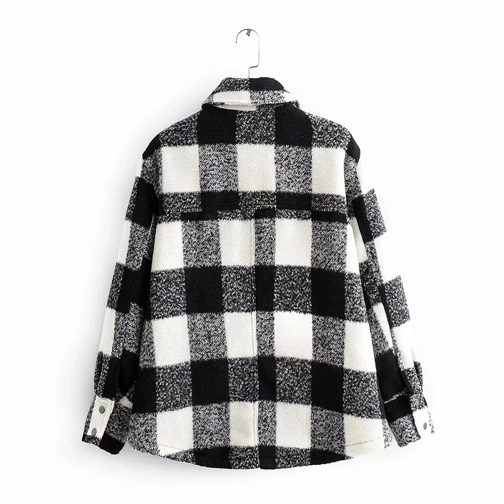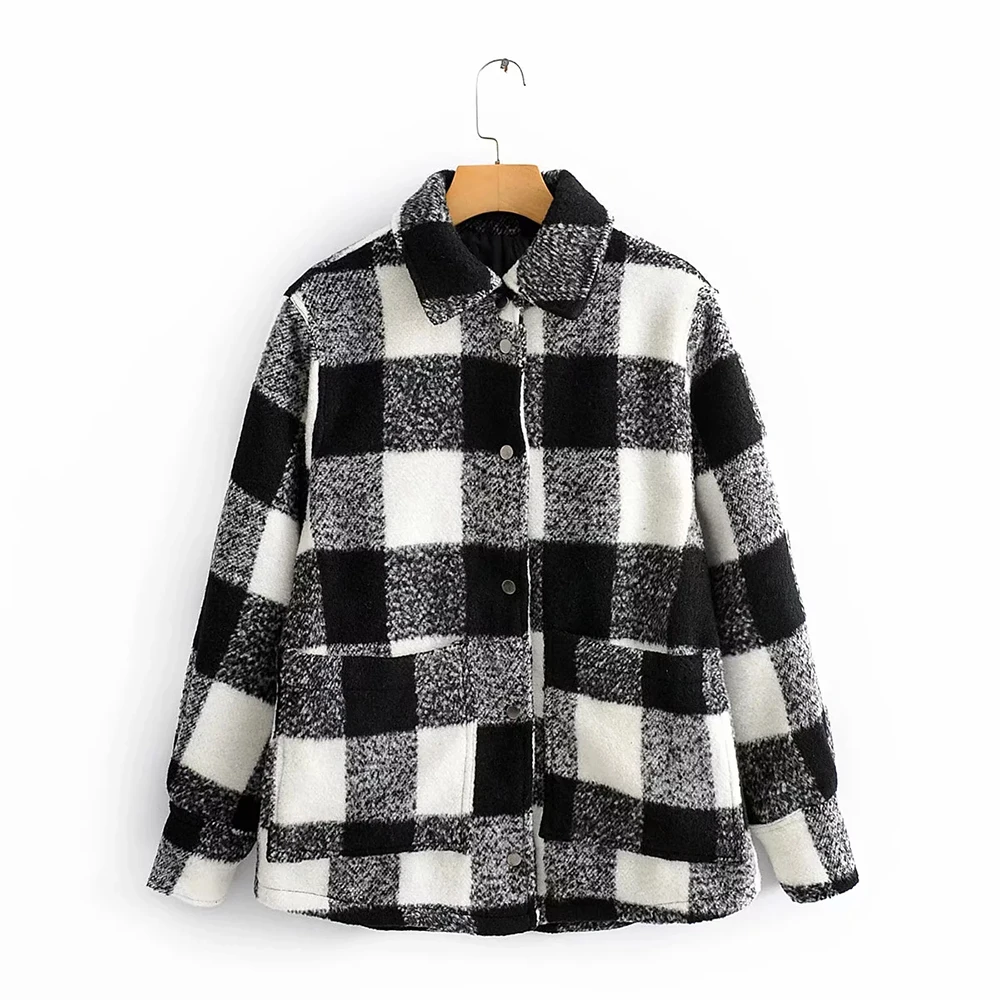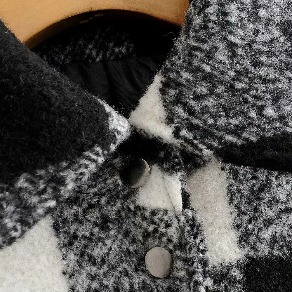 Куртка женская шерстяная, оверсайз, в клетку, в стиле пэчворк, зимняя, 2021