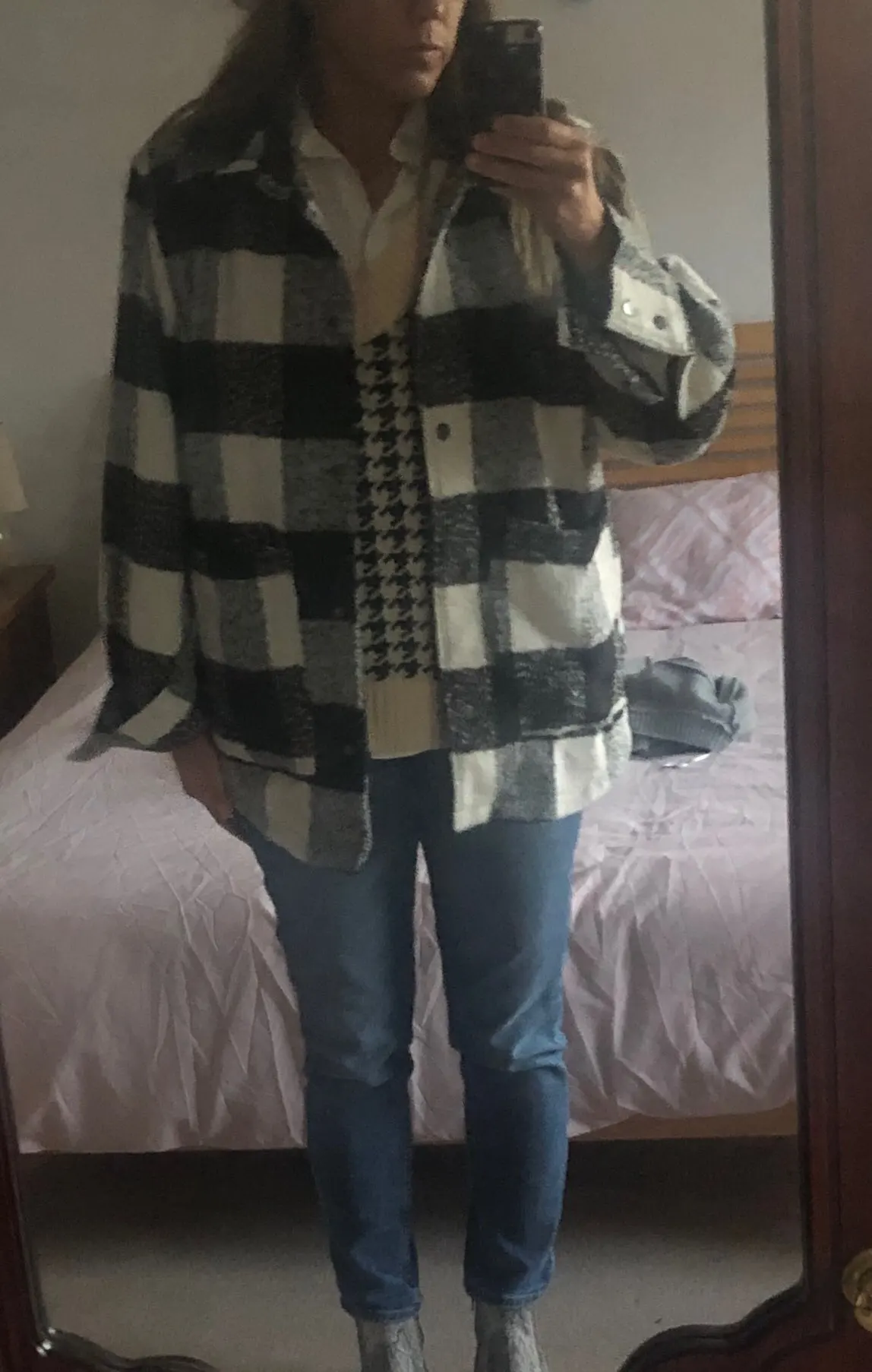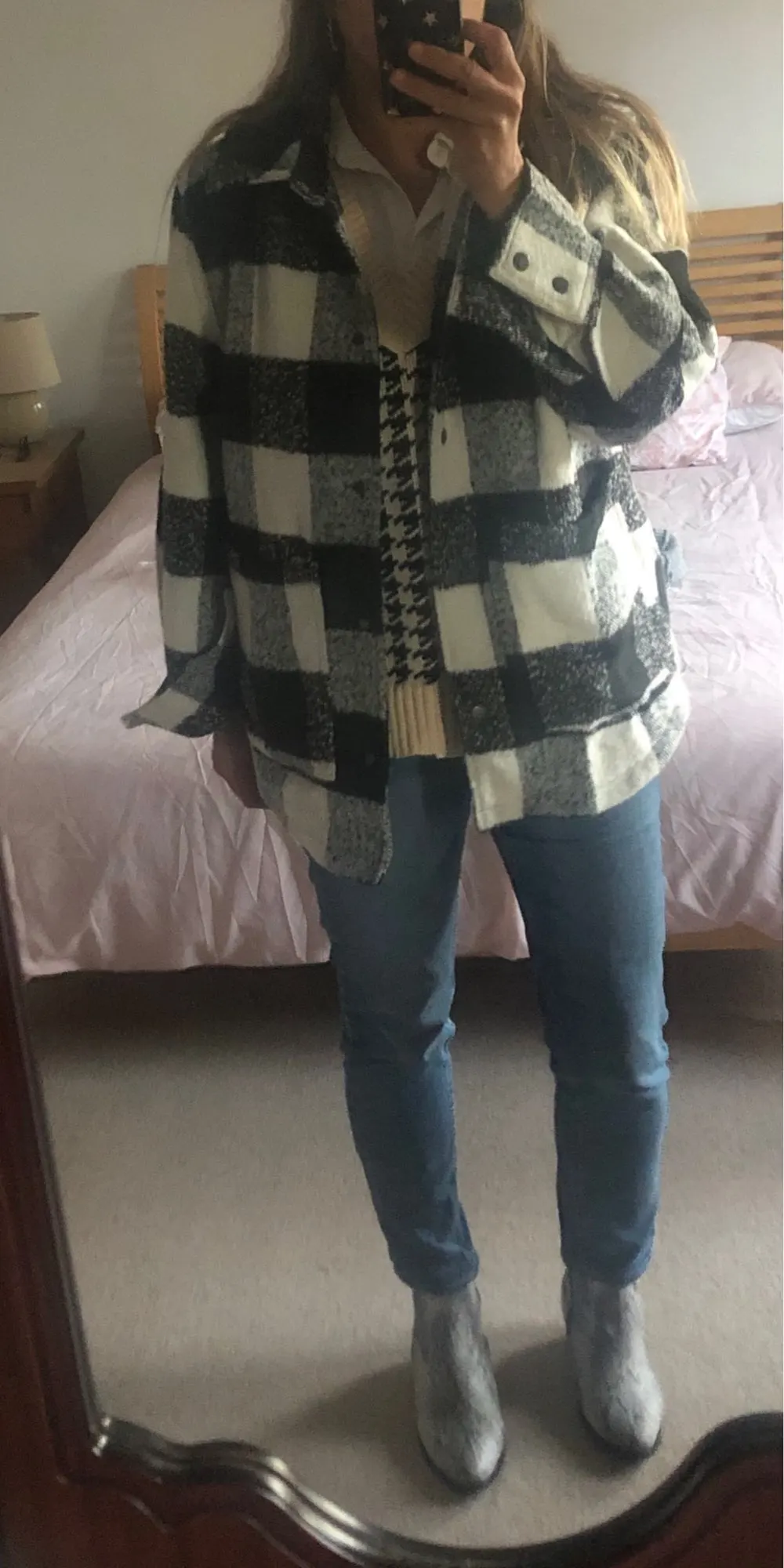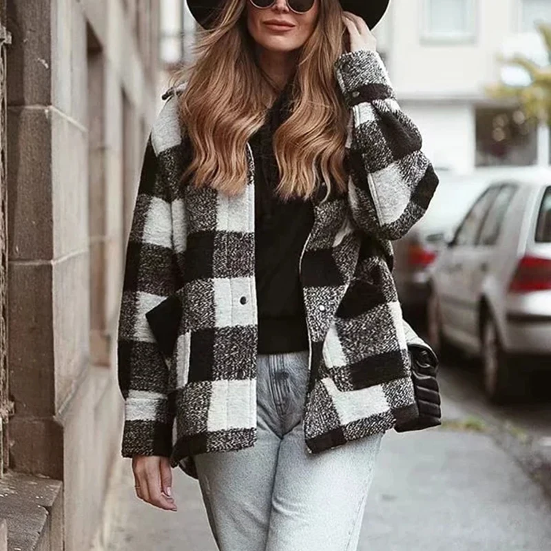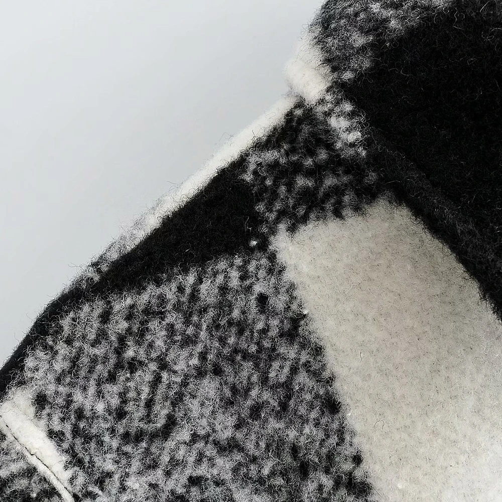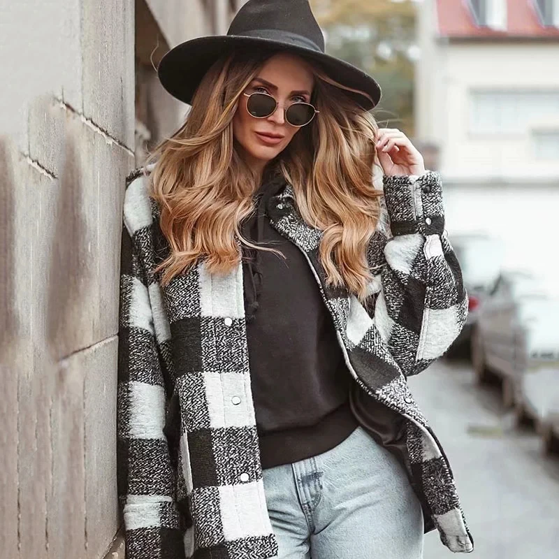 Куртка женская шерстяная, оверсайз, в клетку, в стиле пэчворк, зимняя, 2021