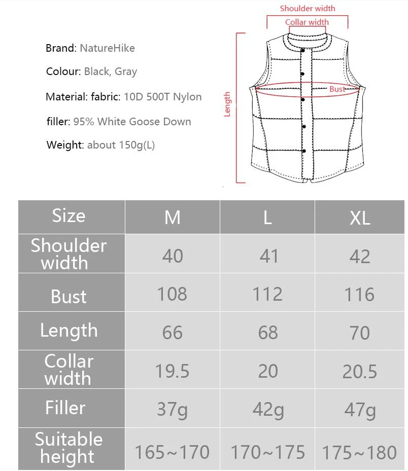 Уличный пуховик Naturehike, Сверхлегкий, 150 г, 95% белый гусиный пух, зимний, теплый, для мужчин и женщин, пуховый жилет на 1000