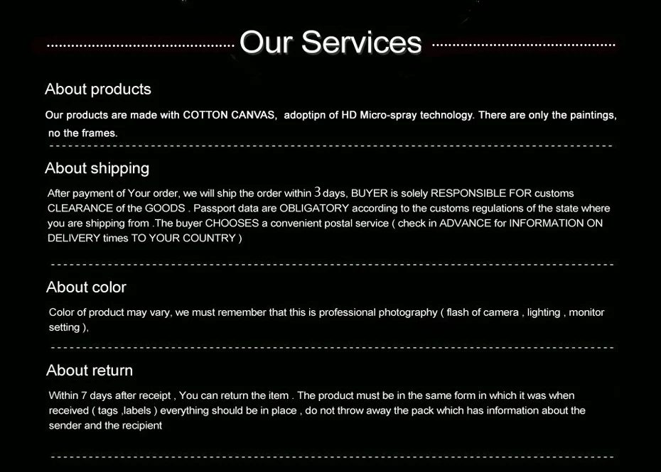 Цвет: как на фотоПосылка: 1 шт., рулон в трубке из ПВХРазмеры измерения: 1 дюйм = 2,54 см10x15 см (4x6 дюймов) 13x18 см (5x7 дюймов) 15x20 см (6x8 дюймов) 20x25 см (8x10 дюймов) 21x30 см (8x12 дюймов) 30x40 см (12x16 дюймов) 30x42 см (12x17 дюймов) 40x50 см (16x20 дюймов) 40x60 см (16x24 дюйма) 42x60 см (17x24 дюйма) 50x70 см (20x28 дюймов) 50x75 см (20x30 дюймов) 60x80 см (24x32 дюйма) 60x90 см (24x35 дюймов)Если необходима белая граница, пожалуйста, оставьте сообщение или свяжитесь с клиентской службой напрямуюИндивидуальные: принимаются, любые индивидуальные изображения и размеры приветствуются.О цвете: цвет будет немного отличаться, из-за некоторых причин, особенно разных компьютерных экранов, надеемся на ваше понимание, спасибо!Доставка может быть снижена, чем больше количество, тем дешевле цена, не стесняйтесь связаться с нами, чтобы изменить цену
