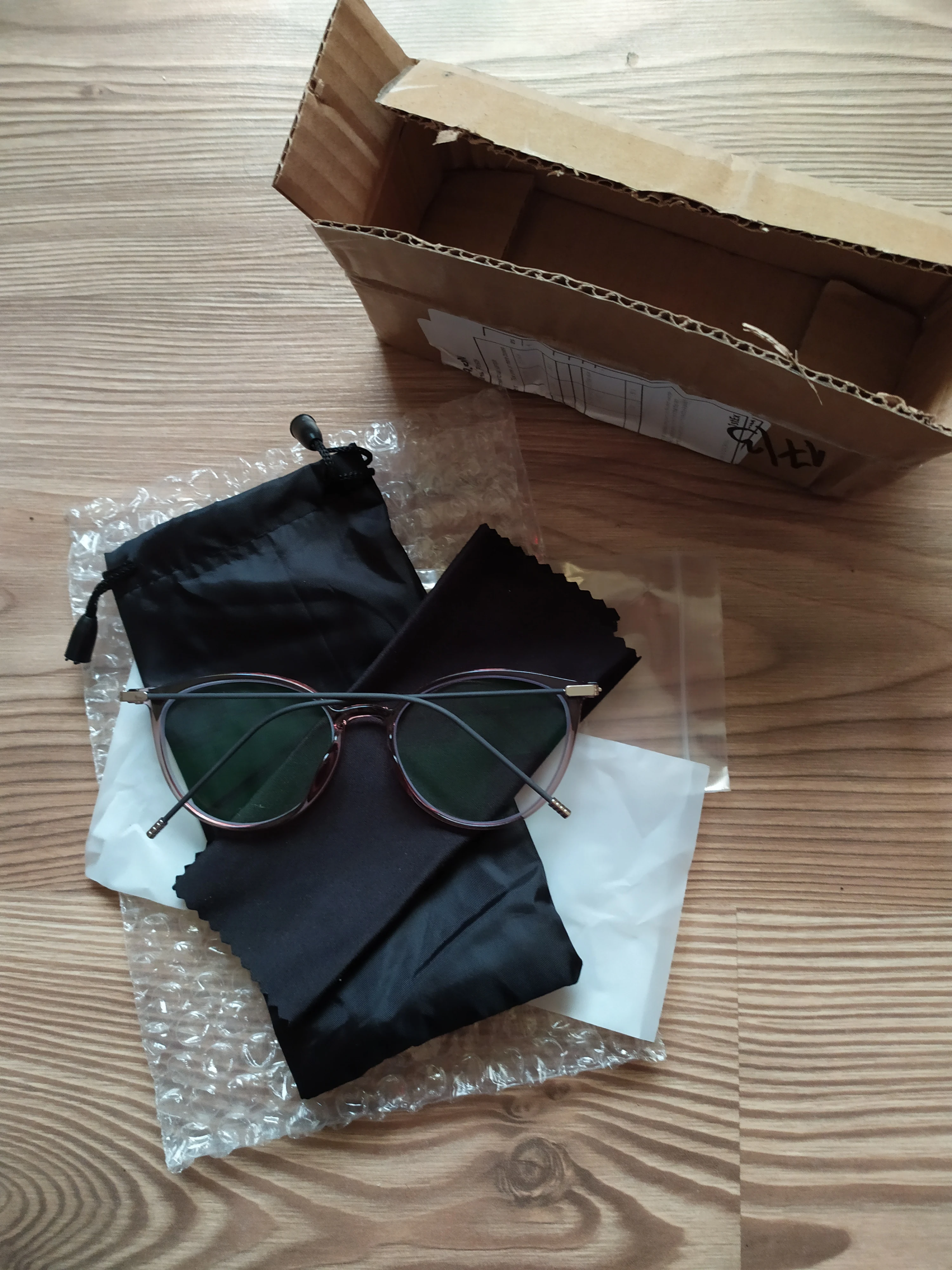 Очки выглядят достойно, дужки хоть и тонкие но не болтаются. Смотрятся модненько. К сожалению мне не очень удобны для глаз. Возможно плохо сцентрованы. Для постоянной носки использовать не буду, на сменку для основных подойдут. Скорее всего поставлю в оправу свои стёкла, т.к. очен понравились. Доставка быстрая. Упакованы в коробочку, все целое. В комплекте матерчатый чехол и тряпочка.