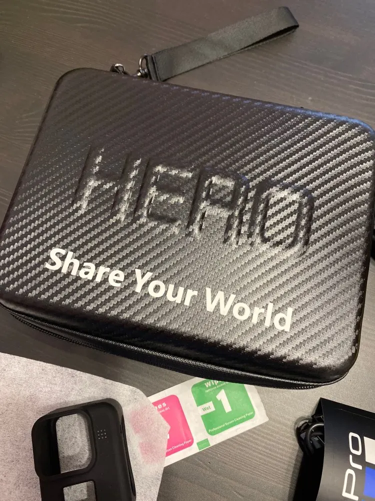 Камера пришла первой. С программой Go pro работает, значит оригинал. Другая посылка со всеми ништяками пришла позже или в то же время, но продавец дал неправильный трек для отслеживания. Из за этого друг другу попортили нервы. Пришлось поднимать спор. И только тогда продавец начал адекватно отвечать на вопросы. Стёкол пришло 2 шт а не три как показано на рисунке продавца. Заказывала самый большой набор. Выгода неимоверная чем покупать все по отдельности и в магазинах города. Прикладываю фото кейса.
