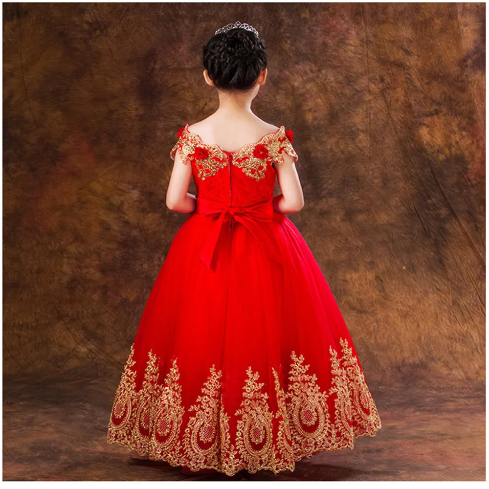 Роскошное и красивое красное платье принцессы с блестками и аппликацией, красивое платье с цветами для девочек на день рождения, свадьбы, наряды на заказ