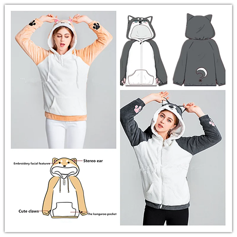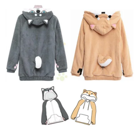 Япония Kawaii Сиба-ину доге хаски пуловер с капюшоном Neko Atsume Cat Толстовка Мяу пальто для девочек толстовки рождественское пальто одежда горячая распродажа