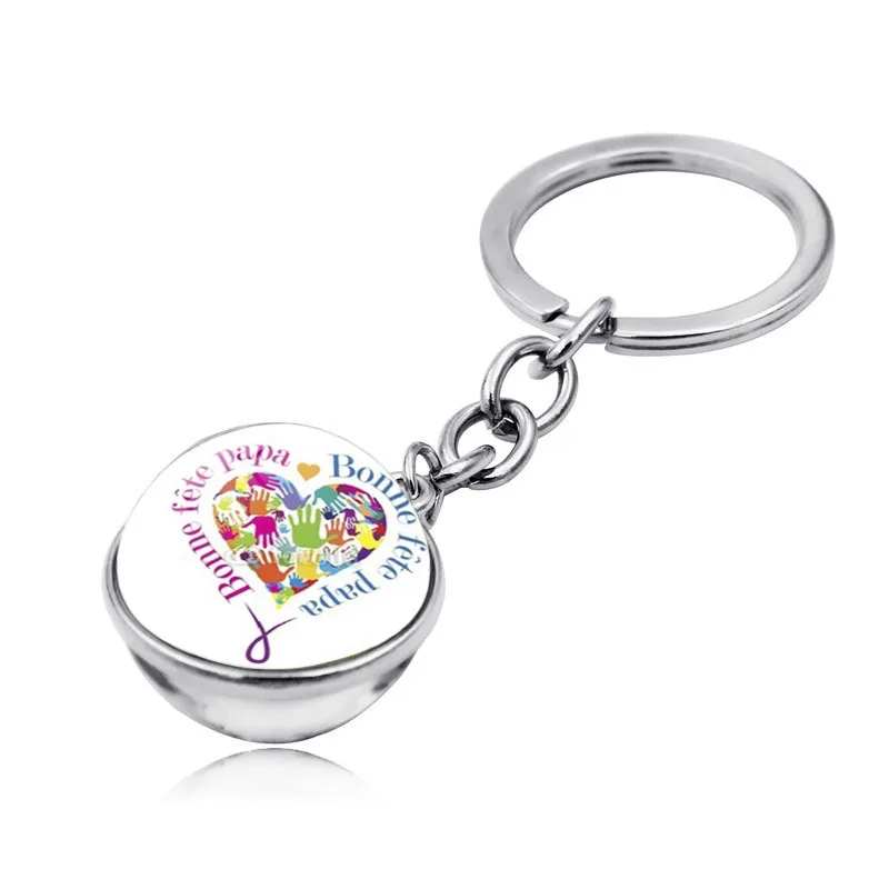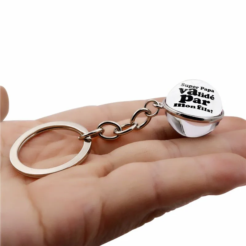 Брелок для ключей папа, модный двухсторонний металлический брелок с подвеской в виде стеклянного шара, надпись Я люблю папу, подарок для папы