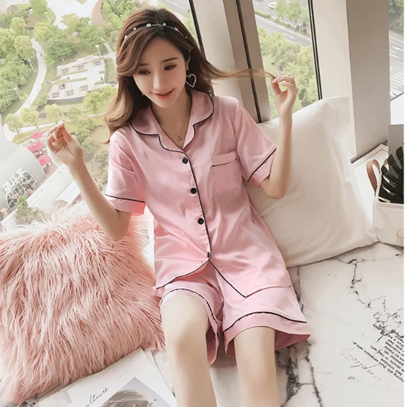 Женский Шелковый Атласный пижамный комплект, одежда для сна, парные пижамы, Пижамный костюм, женский комплект для сна из двух предметов, женская одежда для дома