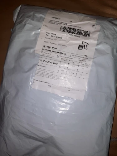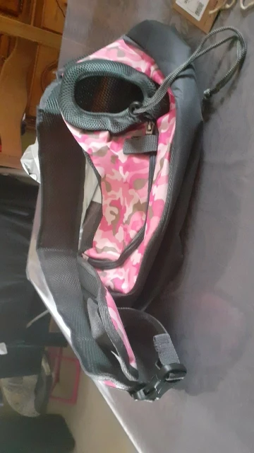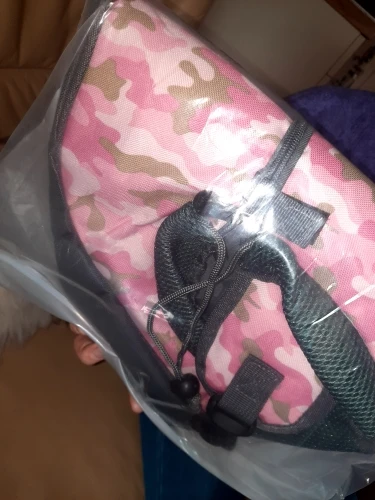 Сумка мне очень понравилась. Удобная для собаки и хорошо лежит шлейка на плече, удобно одевать.На 2-х кг йорика в самый раз. Прорезиненая (можно было засунуть собаку после дождя, есть сетка - что б просыхала :)), но через 3 носки собаки - она начала рваться. Будем надеяться, что это только у меня один маленький брак. Дошла за 10 дней