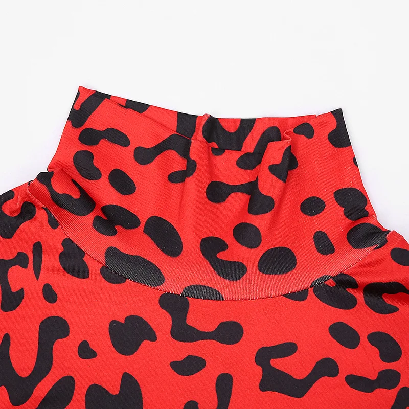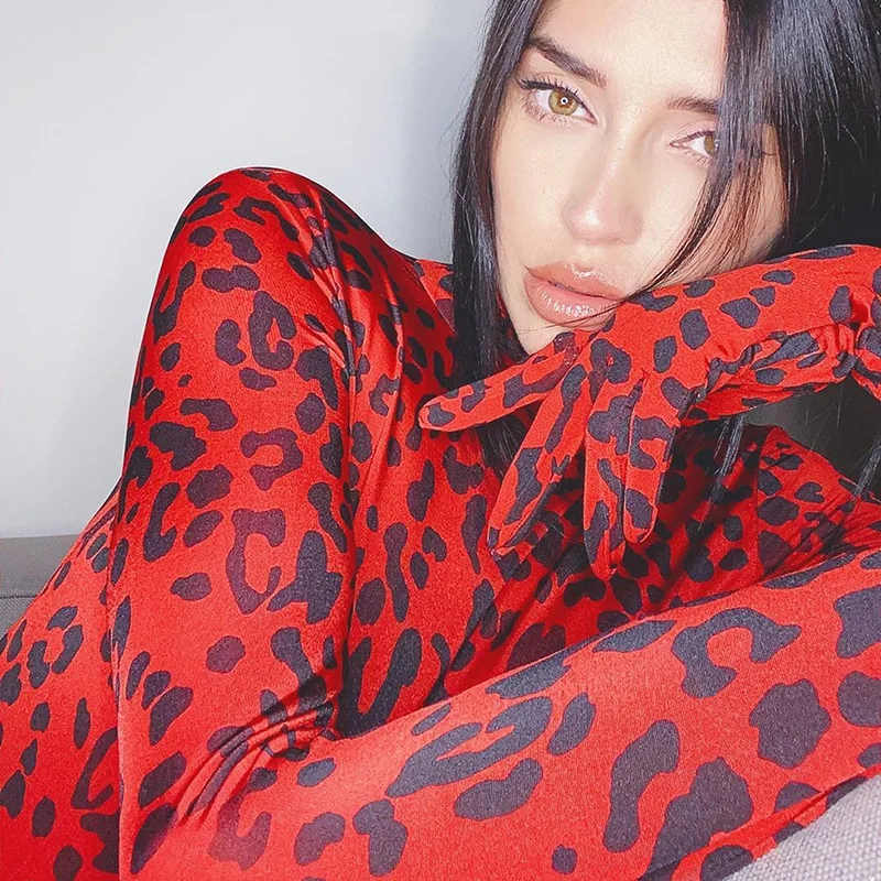 Женский комбинезон с высоким воротником, леопардовым принтом и длинными рукавами