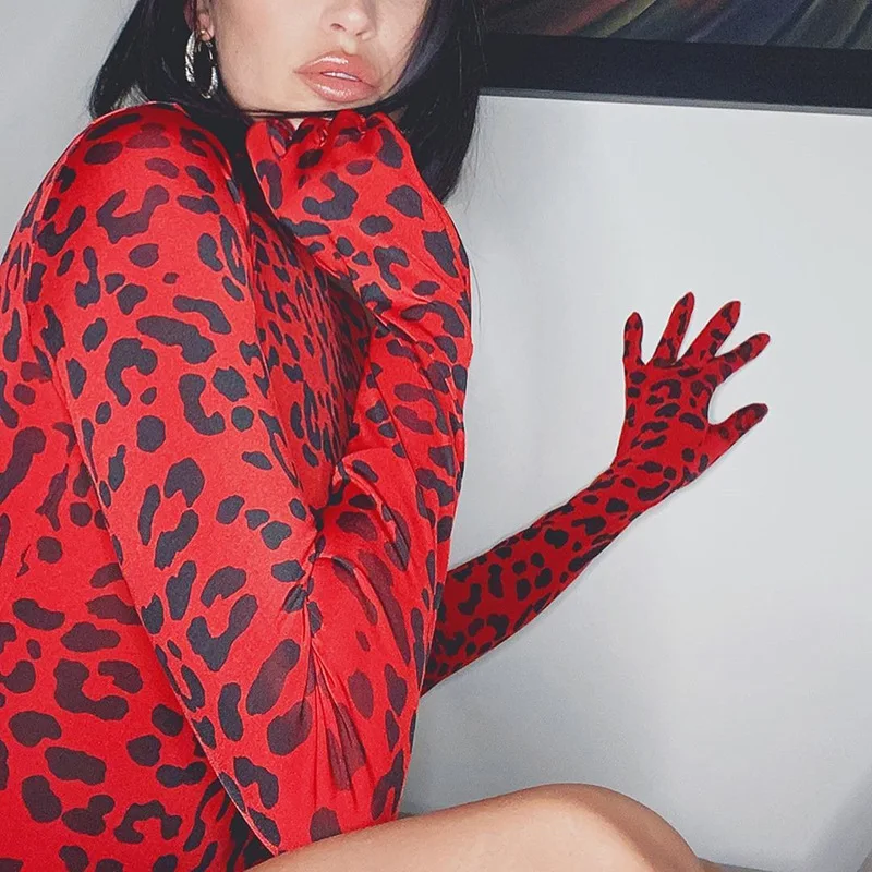 Боди с леопардовым принтом, перчатками и длинным рукавом, 2019