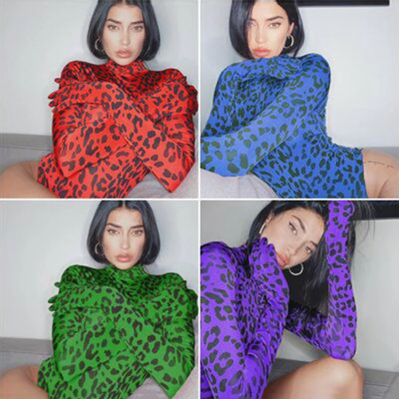Женское боди с длинным рукавом, неоновый Леопардовый боди с перчатк...