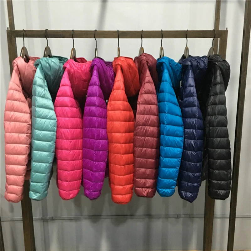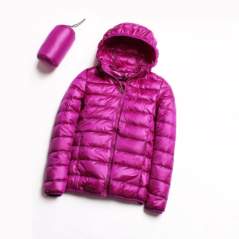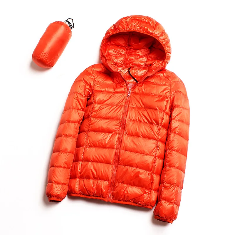 Осенне-зимняя женская Ультралегкая тонкая пуховая куртка на белом утином пуху, куртка с капюшоном, короткое пальто, теплая парка, Женская портативная верхняя одежда