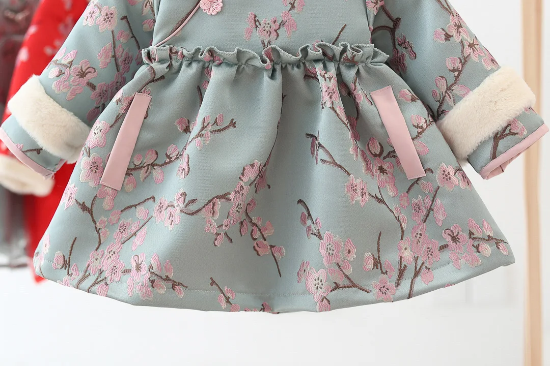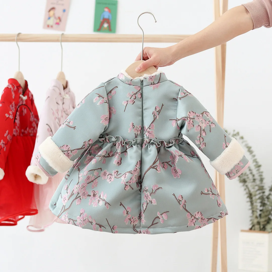 Китайское платье для маленьких девочек Новогодняя одежда Чонсам с длинными рукавами китайское платье Ципао для свадьбы Вельветовая одежда для маленьких девочек