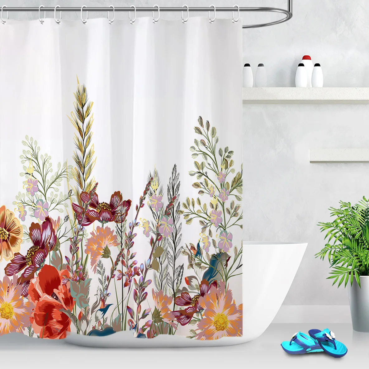 Винтажная Акварельная живопись, тканевая душевая занавеска для ванной комнаты, разноцветные цветы, белый фон, весенний набор занавесок для душа