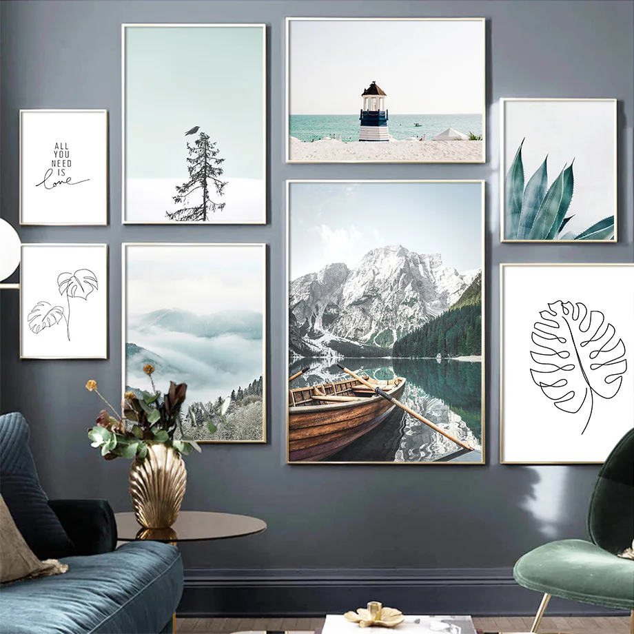 Море акула дерево скандинавские плакаты и принты настенная живопись...