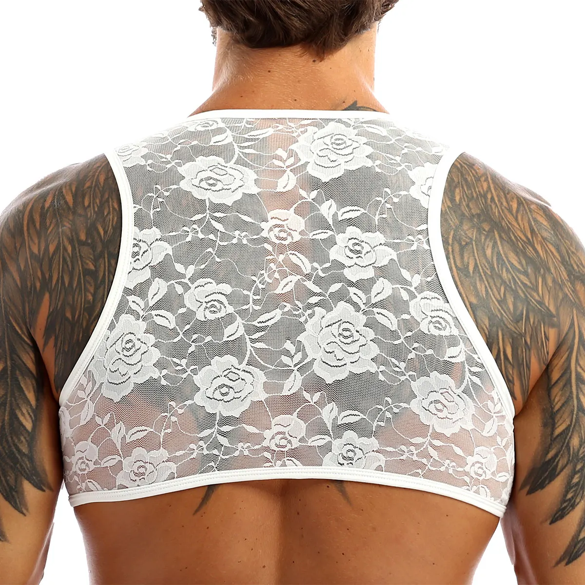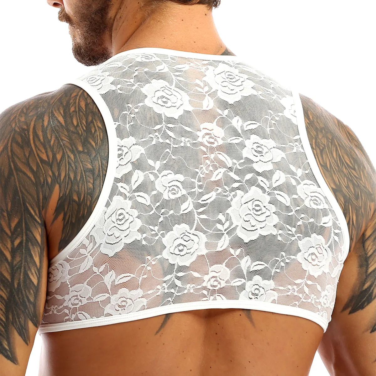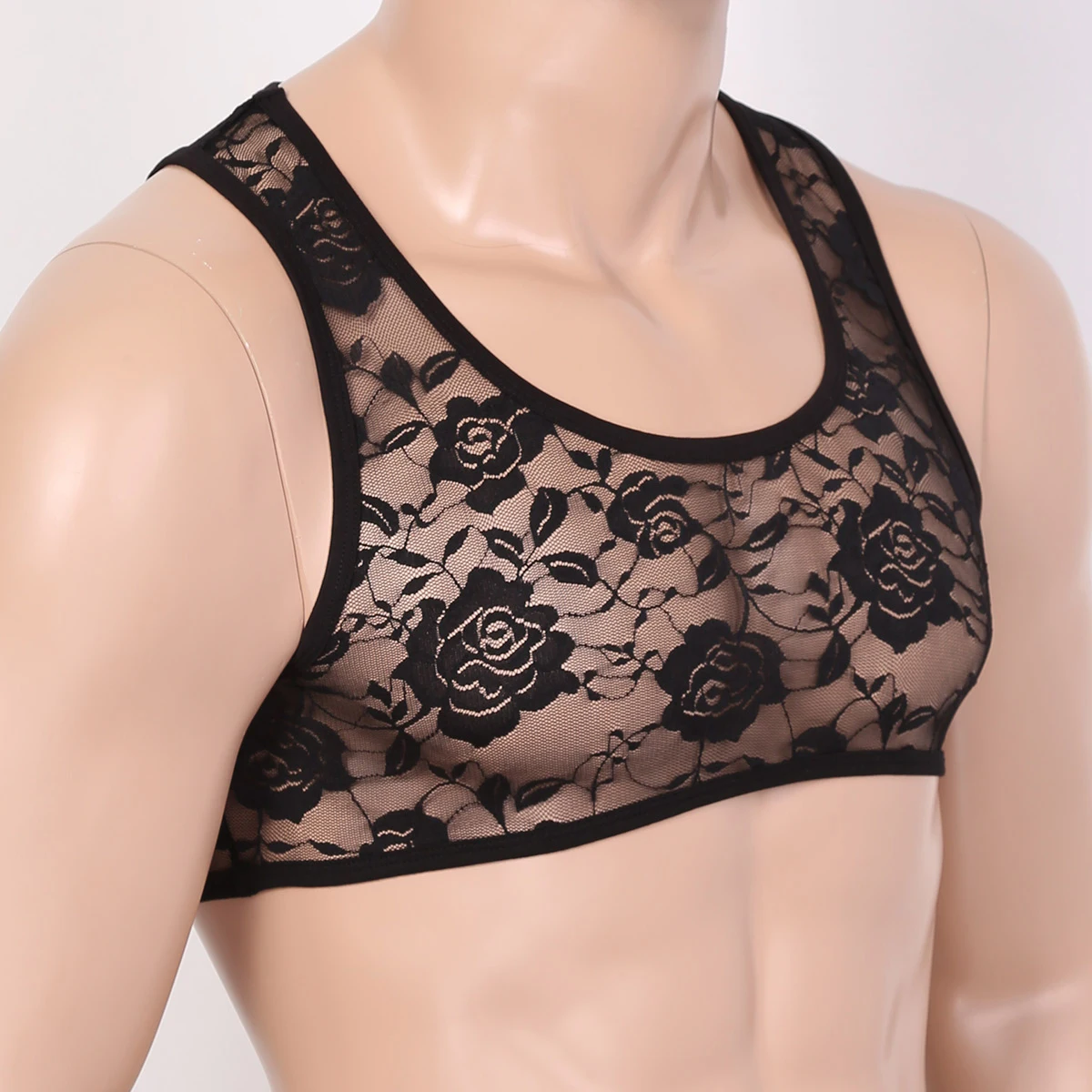 Мужское Прозрачное нижнее белье в стиле Сисси, пикантная ночная рубашка, топ, эластичный кружевной короткий жилет с цветочным рисунком, Короткие топы, одежда для сна на День Св. Валентина