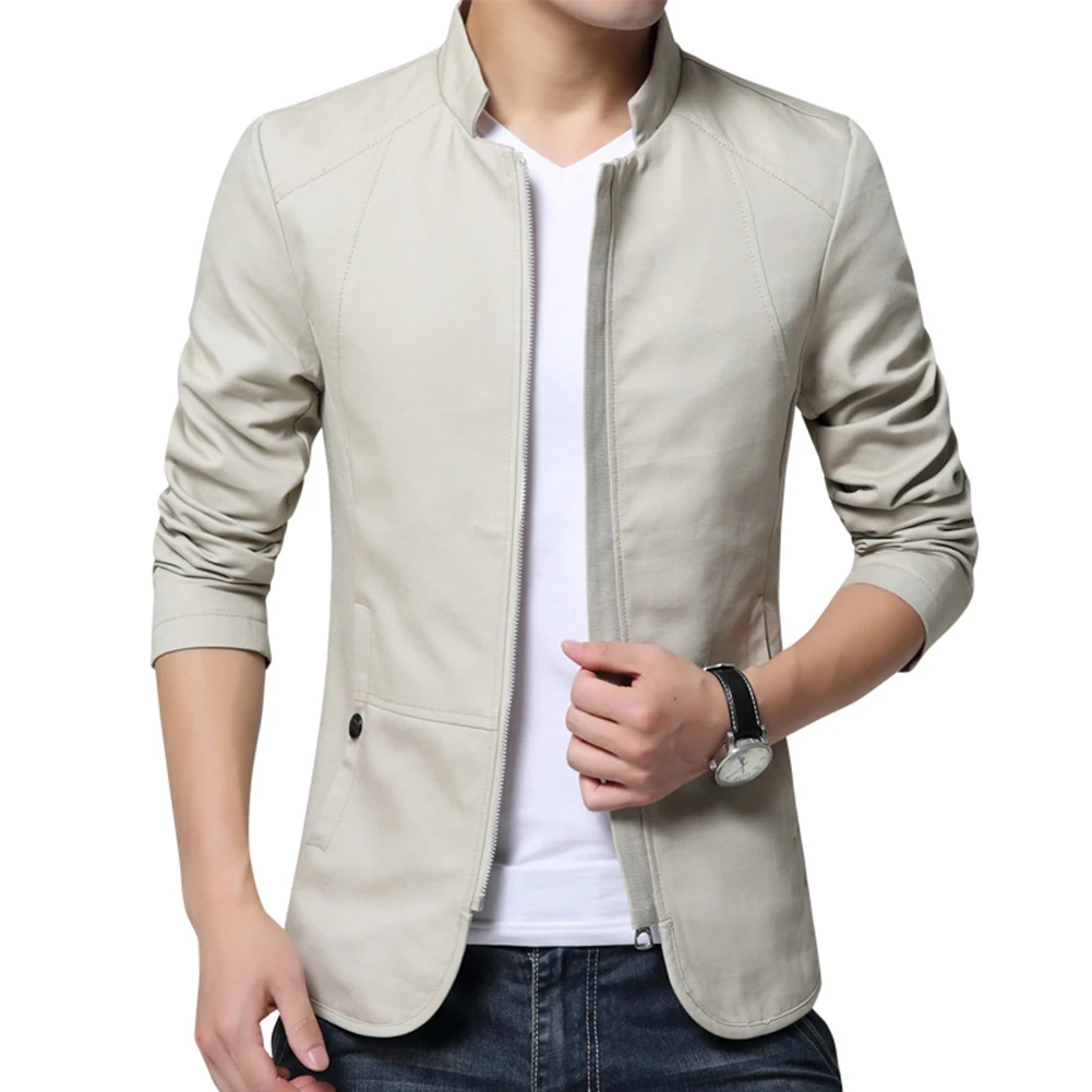 Повседневные мужские осенние однотонные Цвет со стоячим воротником, на молнии, с карманами, Тонкий Блейзер Пальто мужские модные брендовые пиджак для мужчин