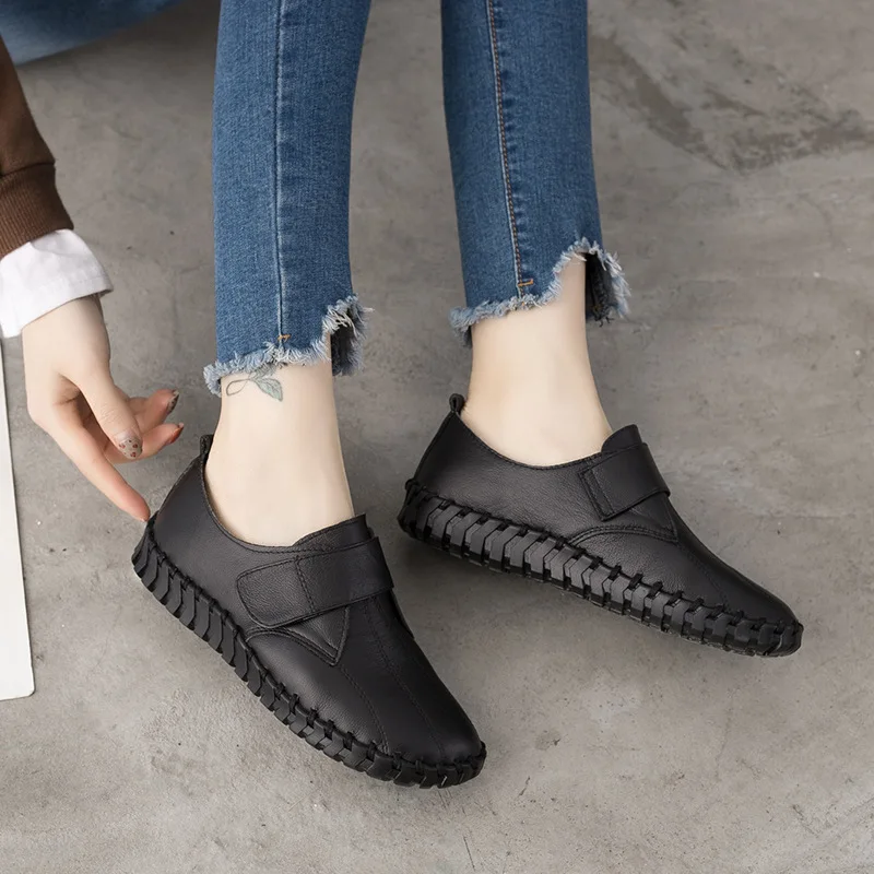 Туфли-оксфорды женские, из мягкой кожи, с круглым носком, на плоской подошве, с боковыми застежками, 2018