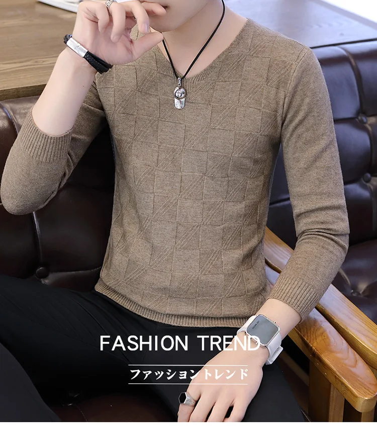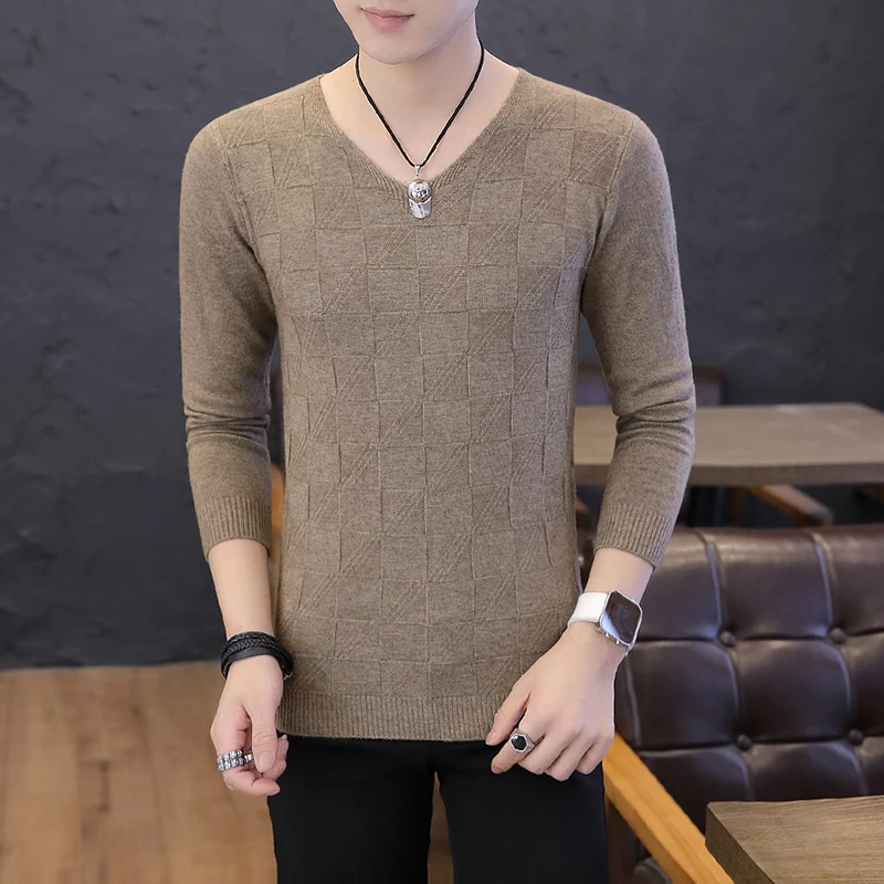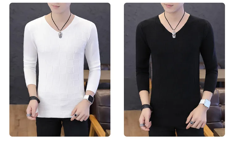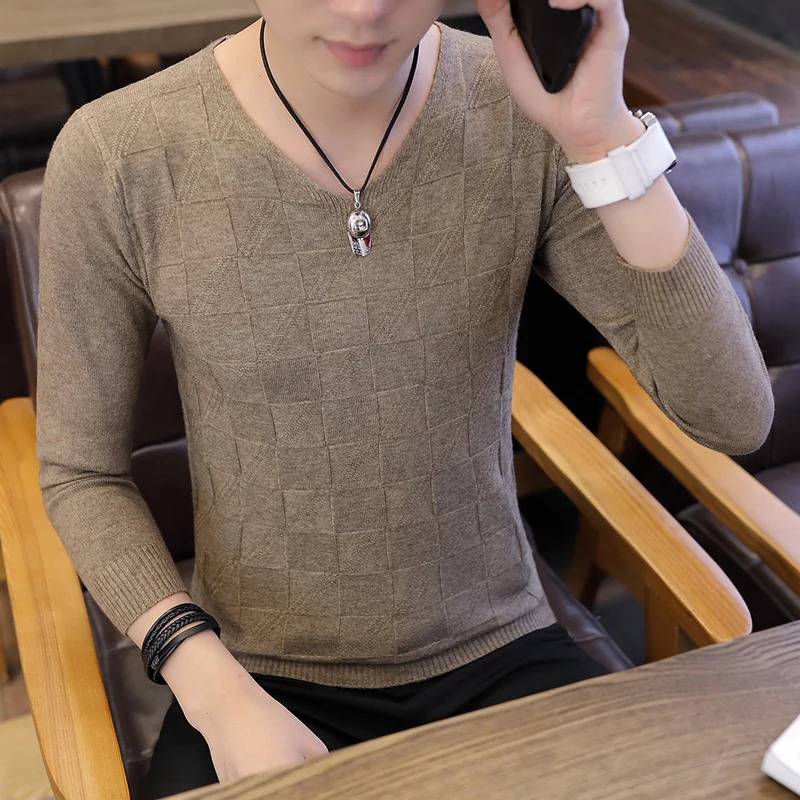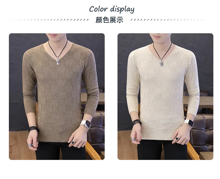 Свитер мужской, трикотажный, с V-образным вырезом, Осень-зима 2019
