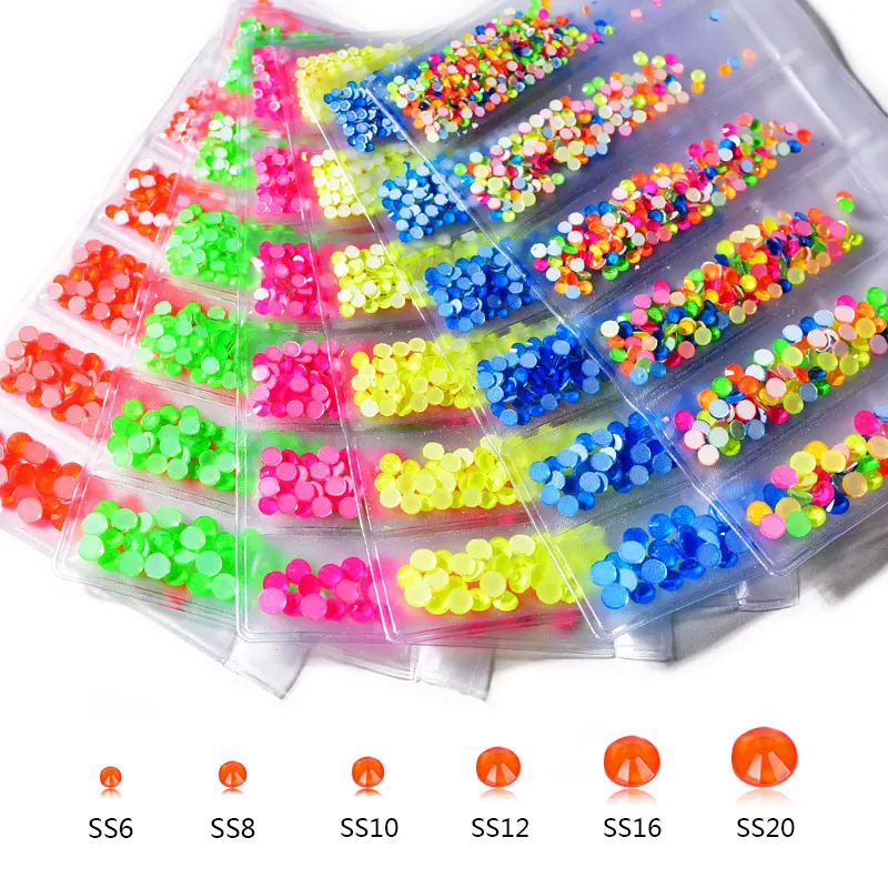 800 шт. смешанные размеры ss6-ss20 флуоресцентные неоновые стразы без горячей фиксации стразы для украшения ногтей F0198