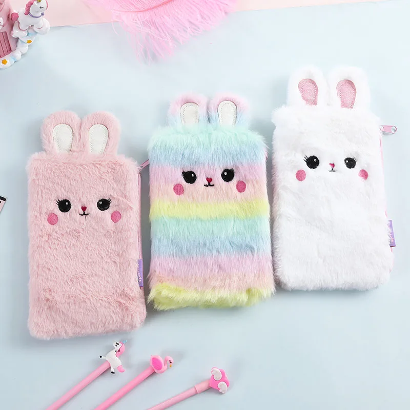 Милый плюшевый пенал в виде кролика, сумка для ручек для девочек, м...