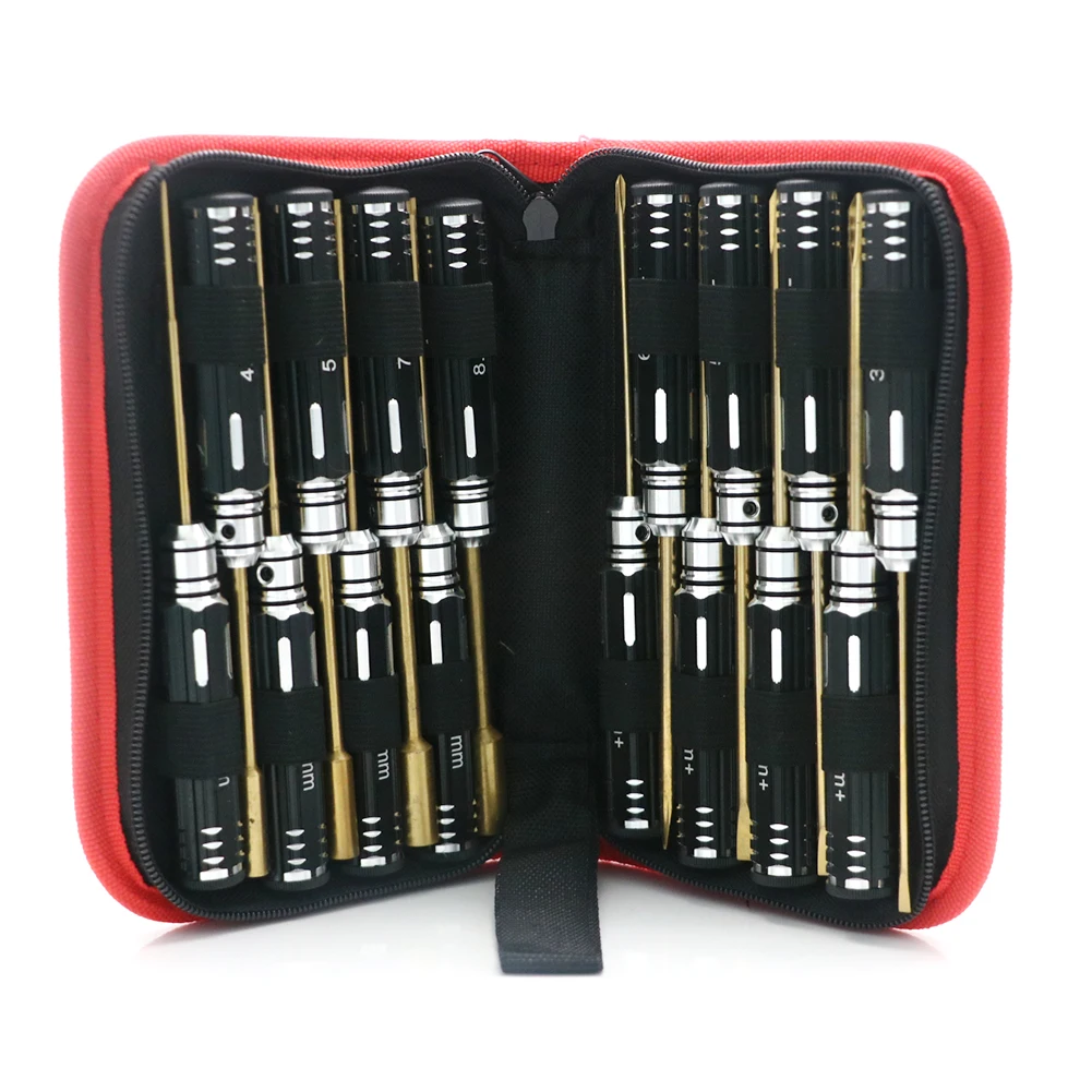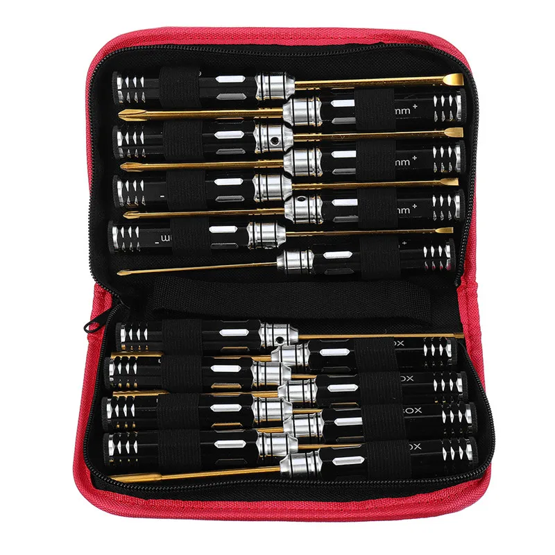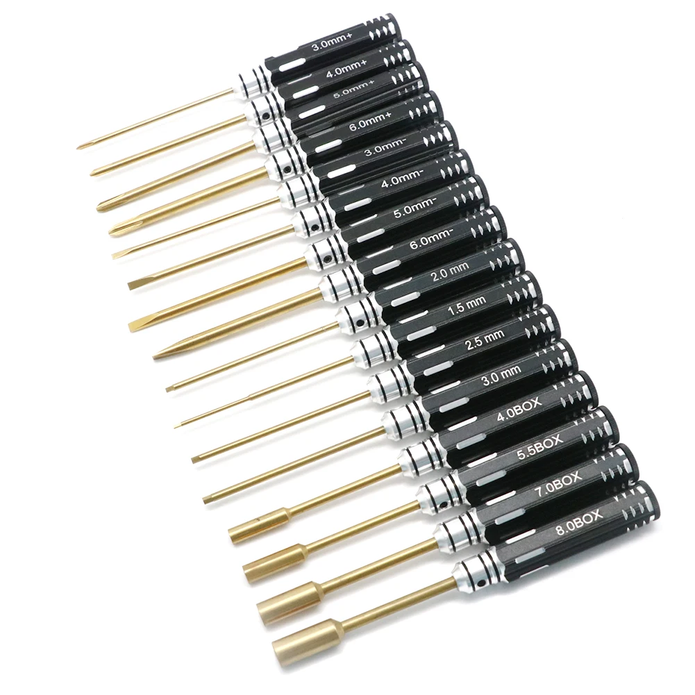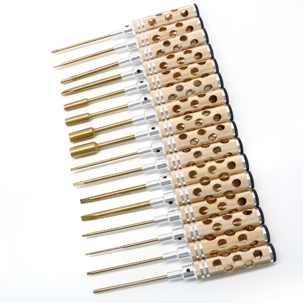 Набор из 16 плоских шестигранных стальных отверток Phillips с сумкой, черный круглый ручной хвостовик для радиоуправляемой модели, мини ручной инструмент, 16 шт.