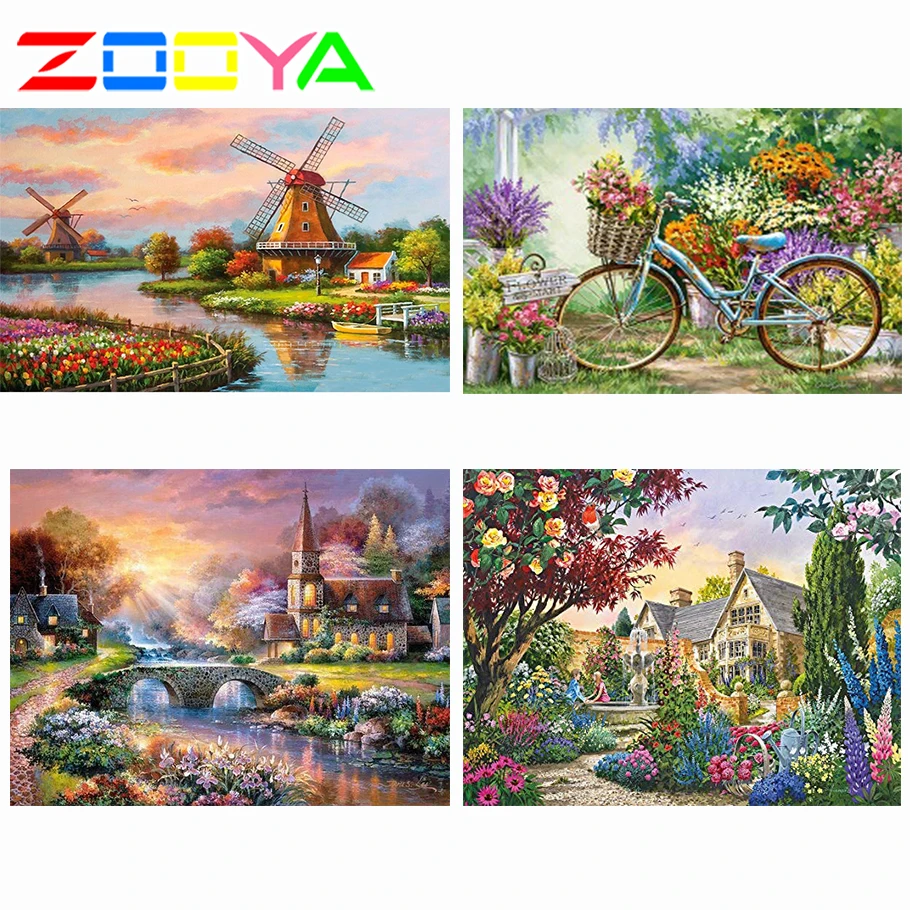 Алмазная живопись Zooya 5D "сделай сам", квадратнаякруглая ветряная мельница, цветок, 3D вышивка крестиком, подарок, домашний декор, ручная работа Jq576