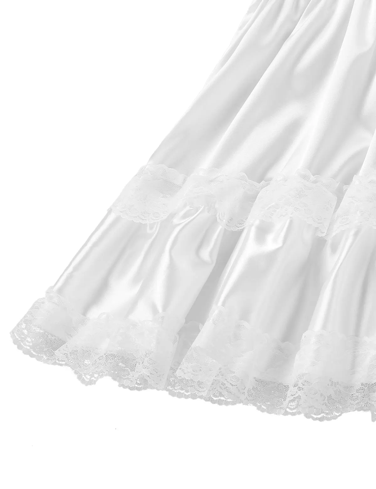 Атласное кружевное платье с оборками для взрослых мужчин, костюм-комод для взрослых, скрытое сзади на молнии.
