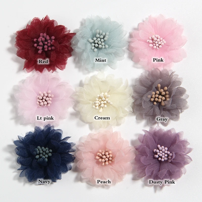 50 шт., искусственные шифоновые цветы для волос, 4 см, 1,5 дюйма