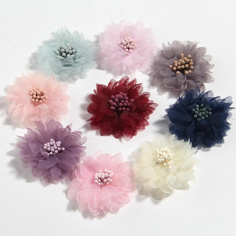 10 шт. 4 см 1,5 дюйма новые маленькие шифоновые цветы со спичками в...