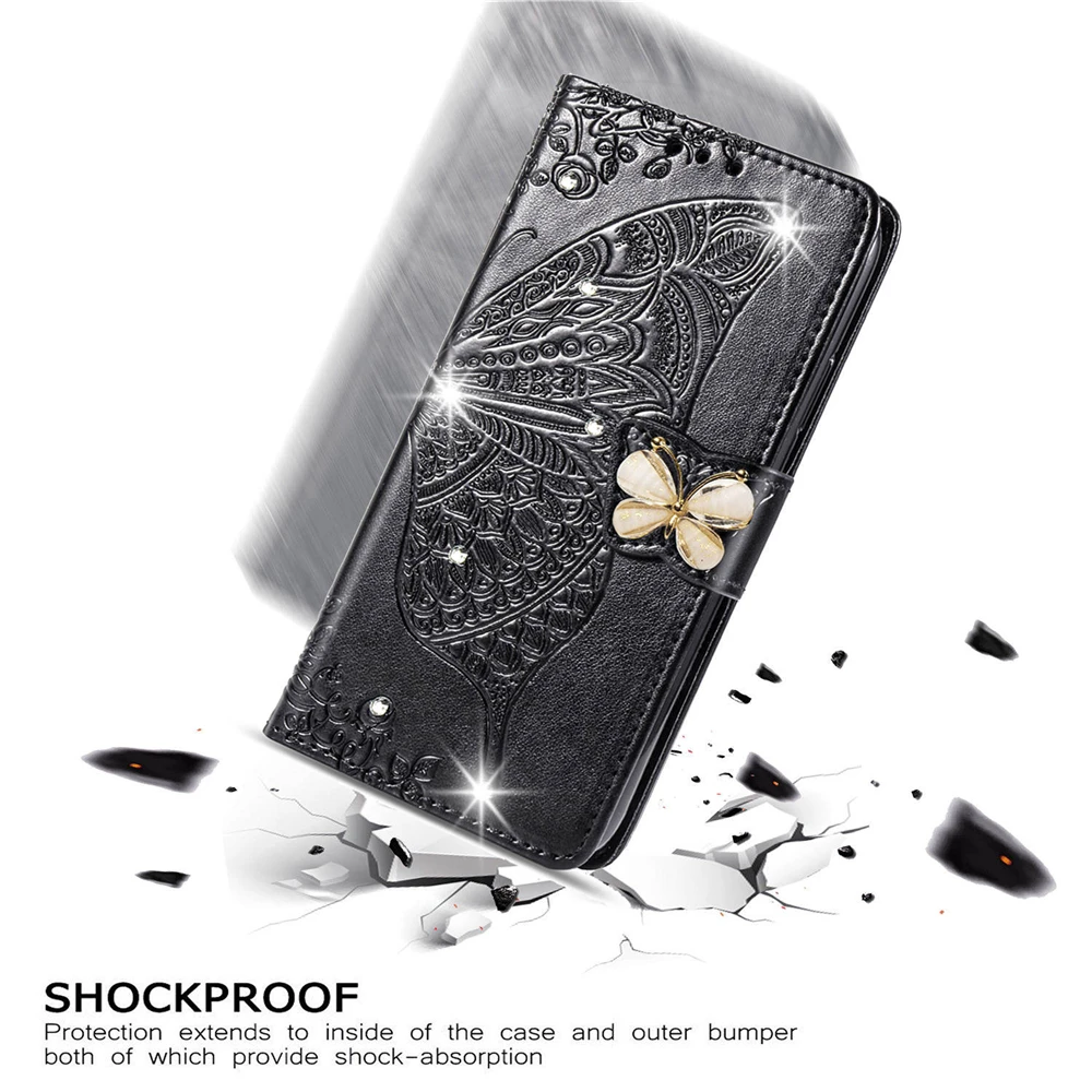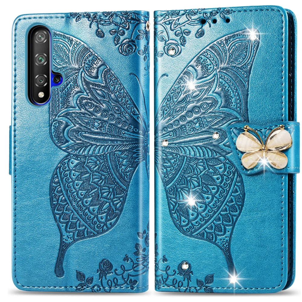 Чехол для Honor 20S 20 Point drill Butterfly, кожаный чехол для Huawei P20 lite 2019 Mate 30 PRO NOVA 5 PRO, стильный чехол-книжка с откидной крышкой