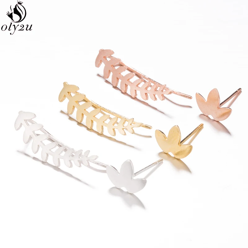 Женские винтажные в форме листа, в стиле бохо серьги-гвоздики Oly2u, свадебное Ювелирное Украшение для ползунков с листьями, веточками, альпинистом, хороший подарок для невесты