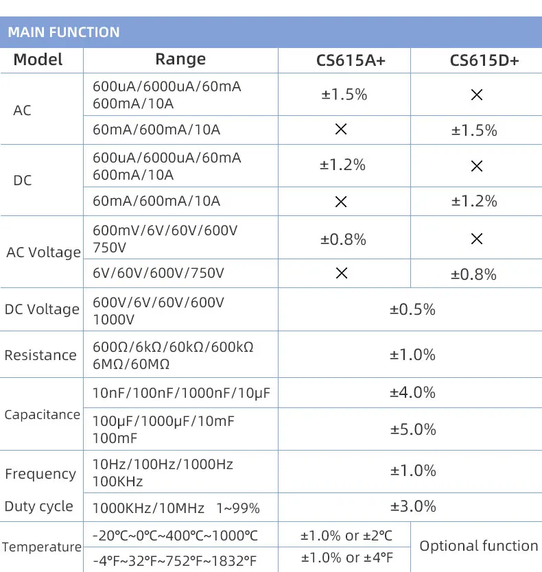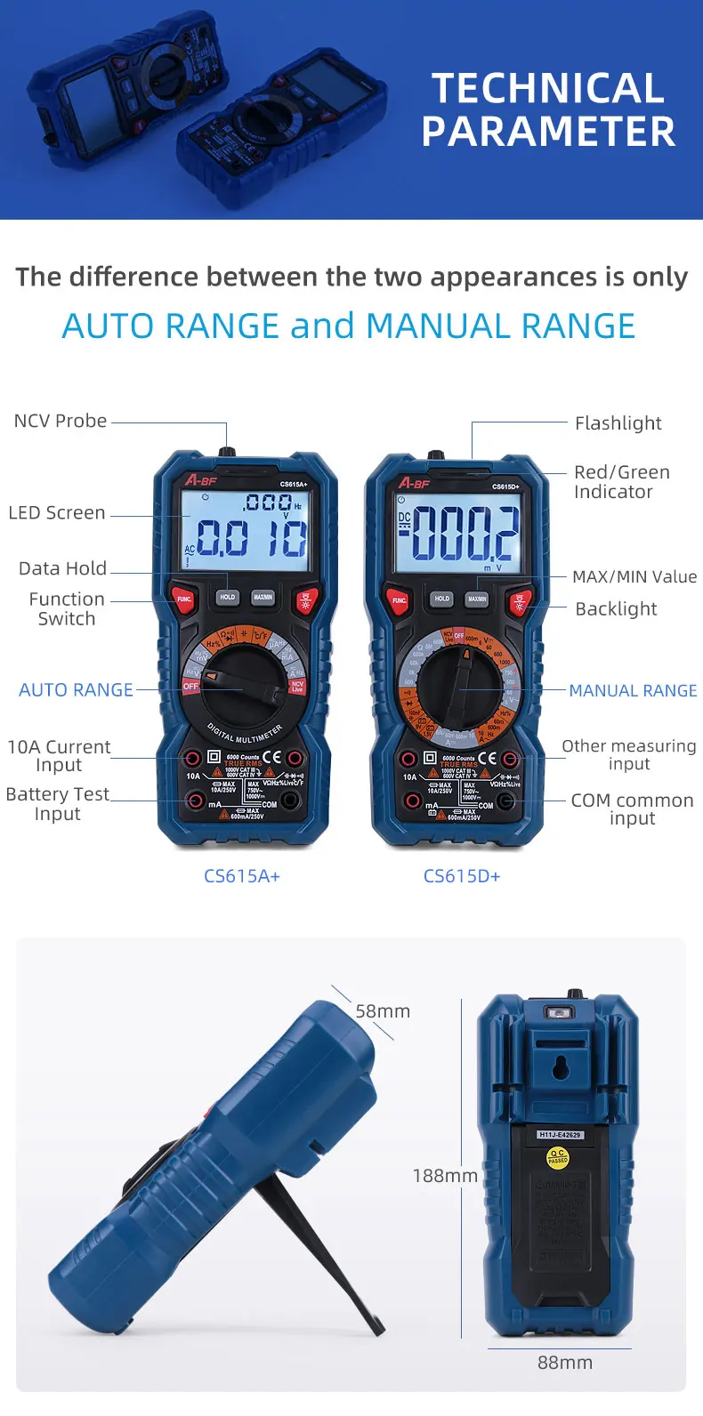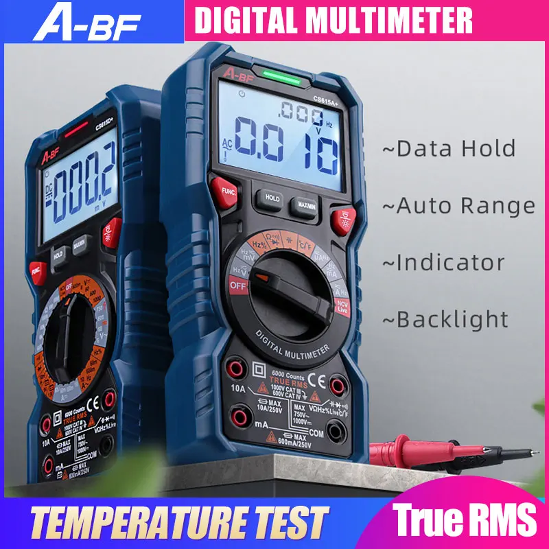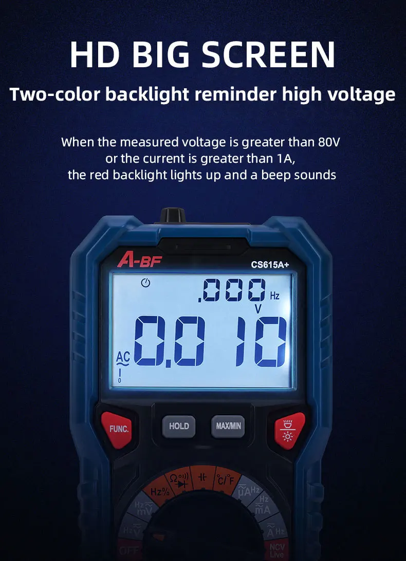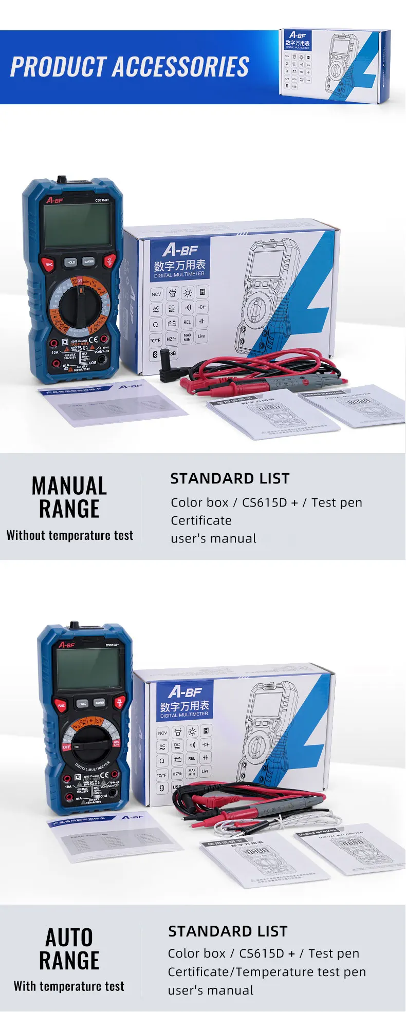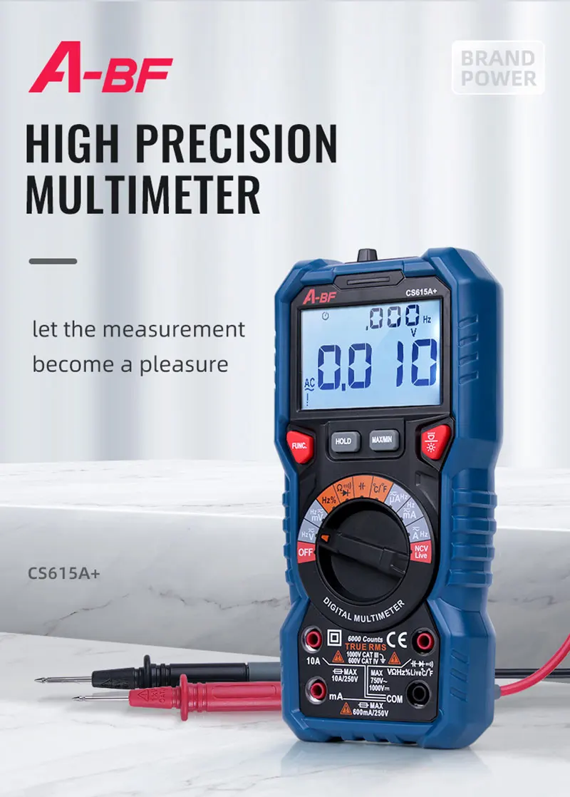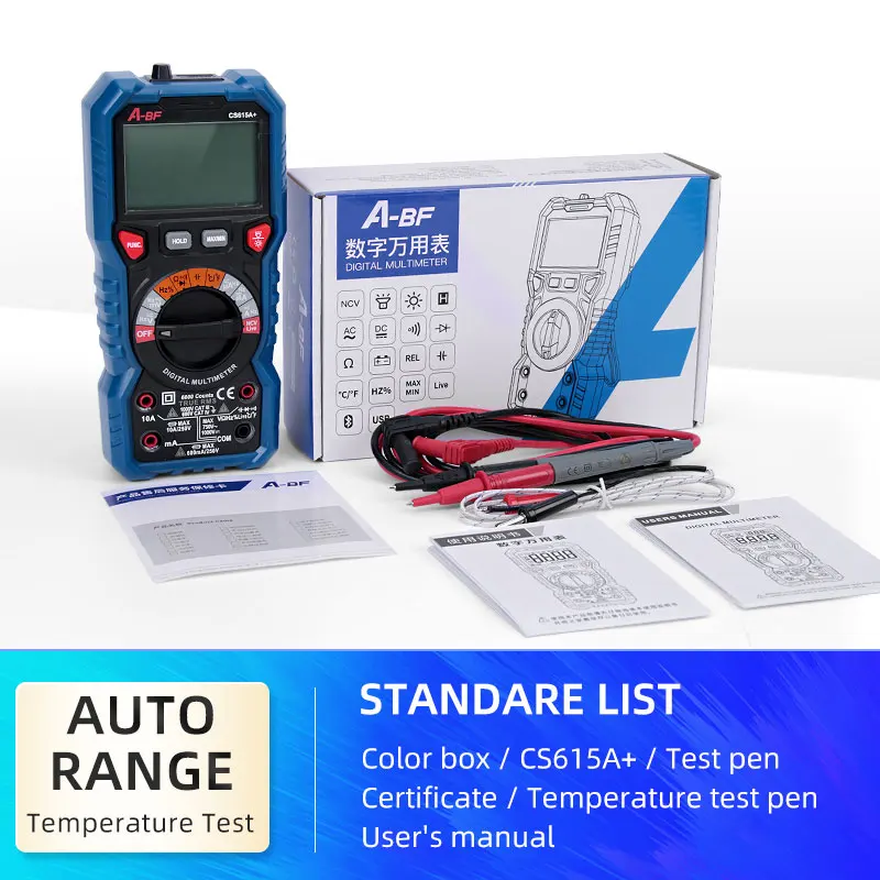 Цифровой мультиметр A-BF CS615A +CS615D +, высокоточный портативный мультиметр с функцией True RMS и автоматическим выбором диапазона, защита от ожогов, хранение данных