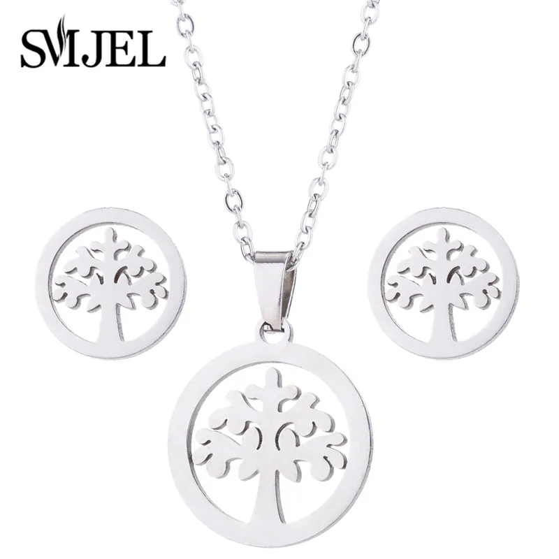 Набор женских и детских украшений SMJEL, из нержавеющей стали, с изображением дерева жизни и снежинок