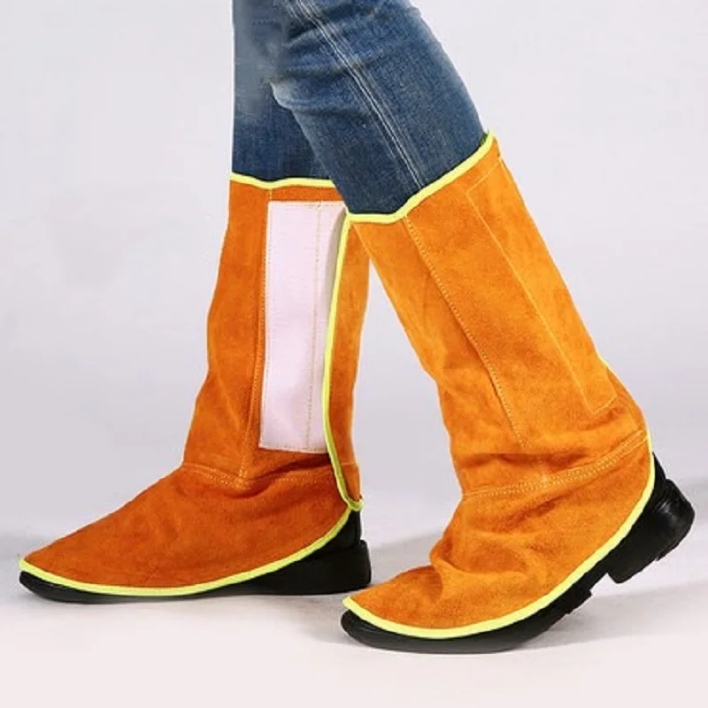 Сварочная безопасная защита ног из воловьей кожи огнеупорная теплоизоляция износостойкая с эластичной лентой